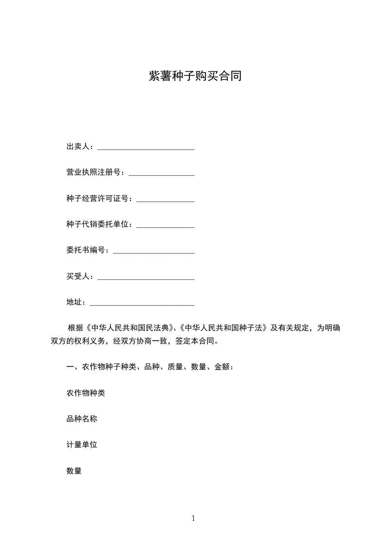 根据《中华人民共和国民法典》、《中华人民共和国种子法》及有关规定,为明确双方的权利义务,在双方协商一致的基础上,自愿签订本合同。