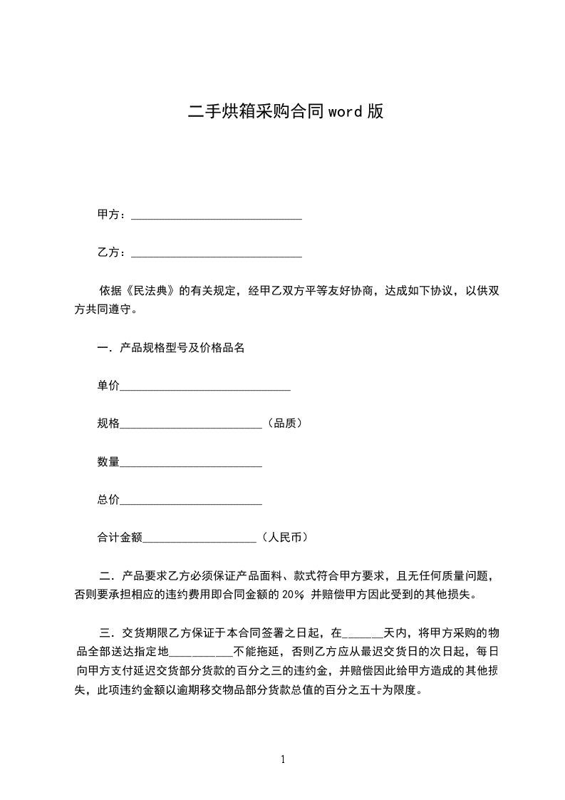 二手烘箱采购合同word版