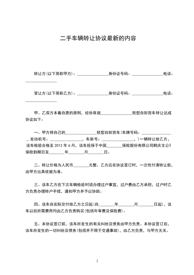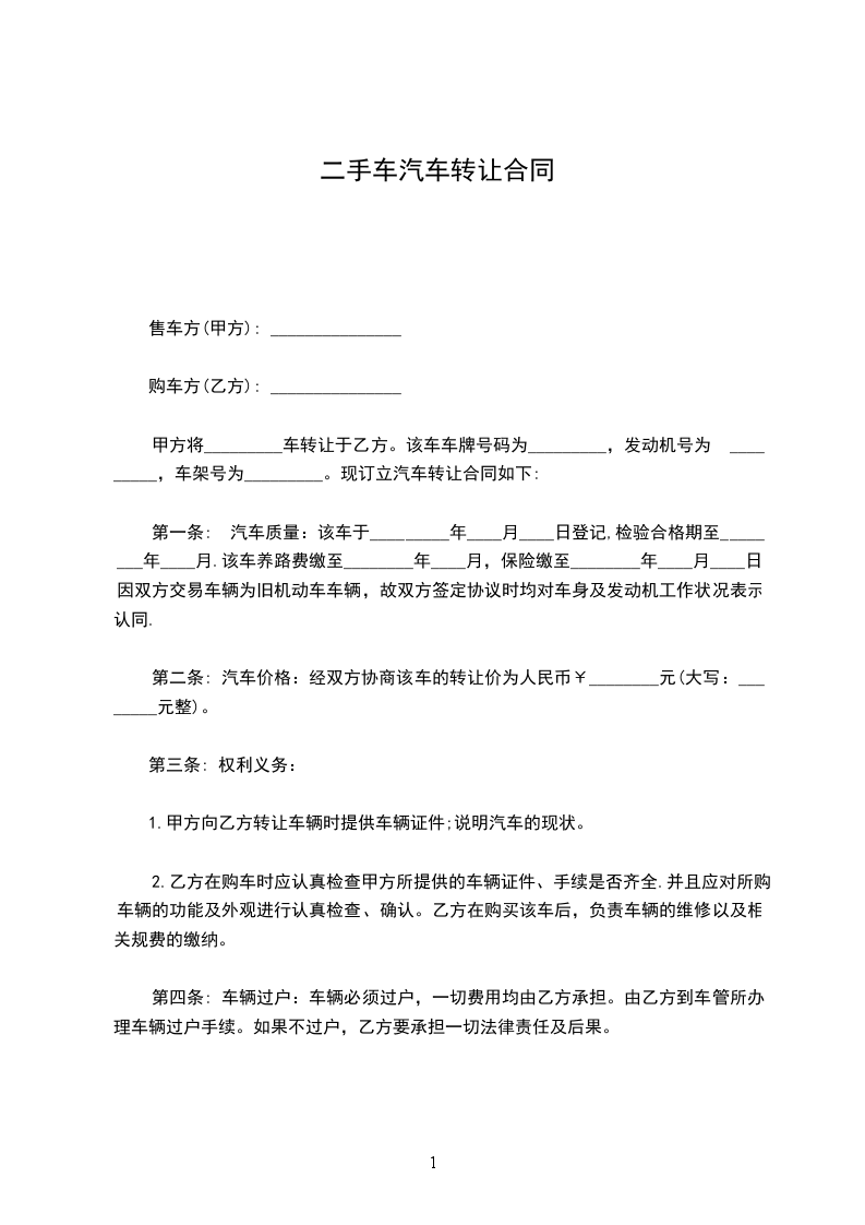 上列当事人就汽车买卖事宜订立合约如下: