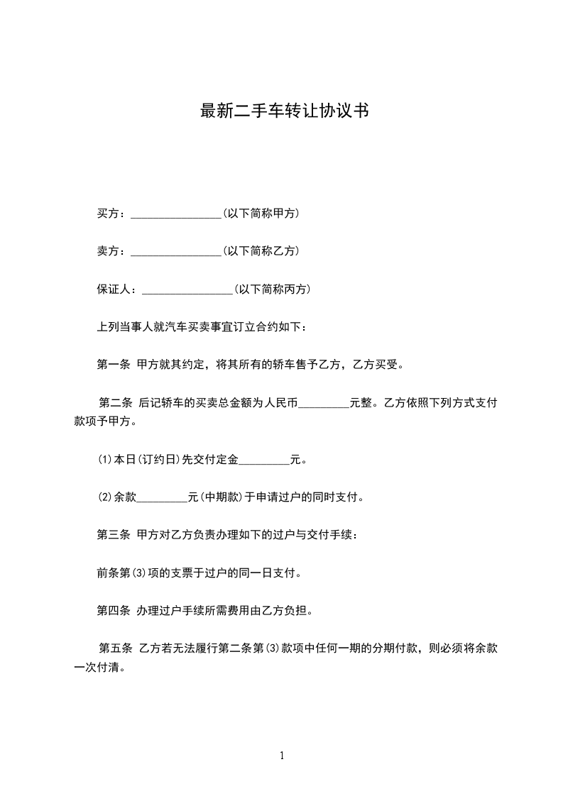 (2)余款_________元(中期款)于申请过户的同时支付。