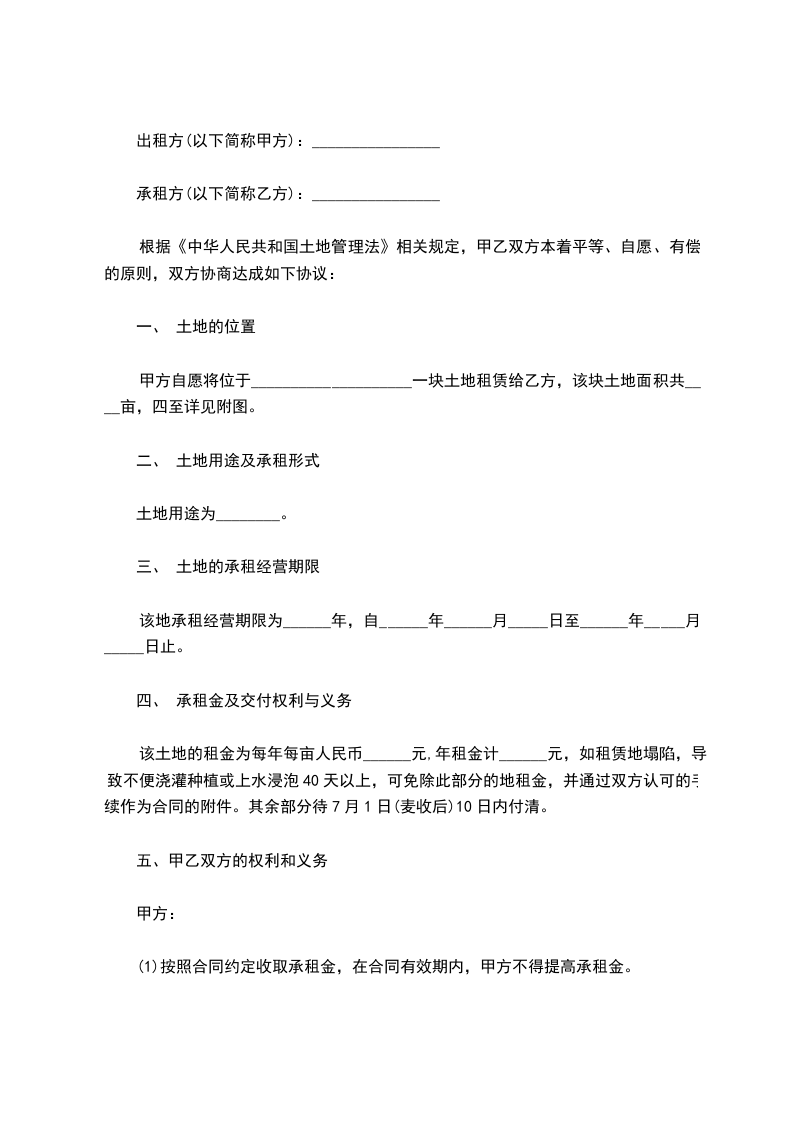 1.在本合同有效期内,遵照自愿、互利的原则,可以将承租的土地全部或部分转包给第三方。