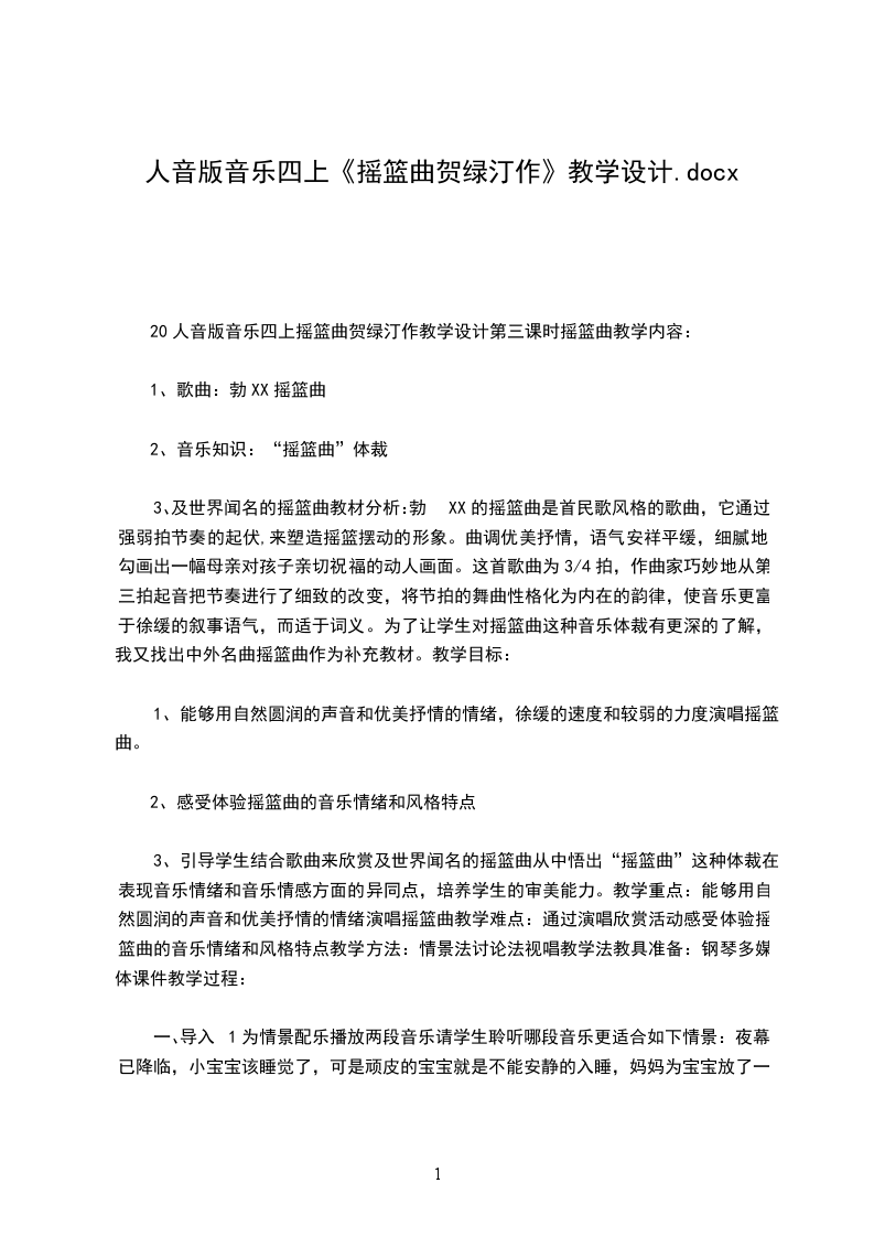 一、认知性:了解摇篮曲的风格。