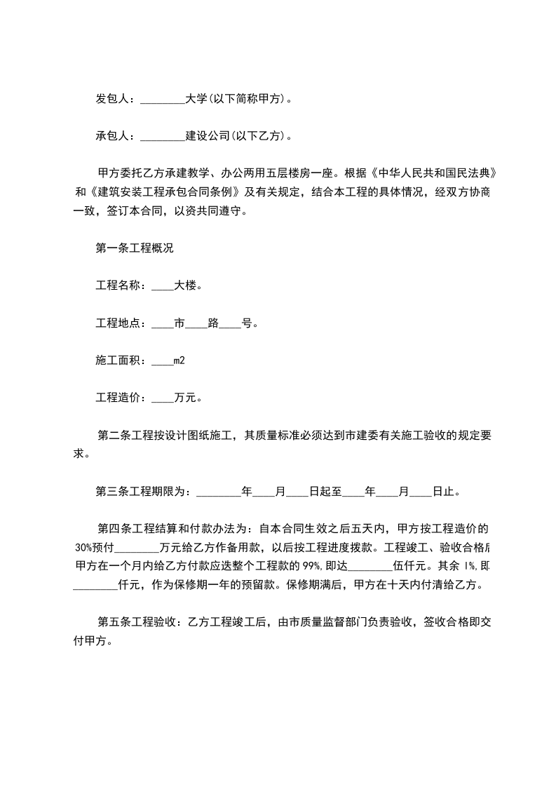 工程总价: 按下室占地面积_______元(此价格含不可考虑的因素,没有任何价格调差)。