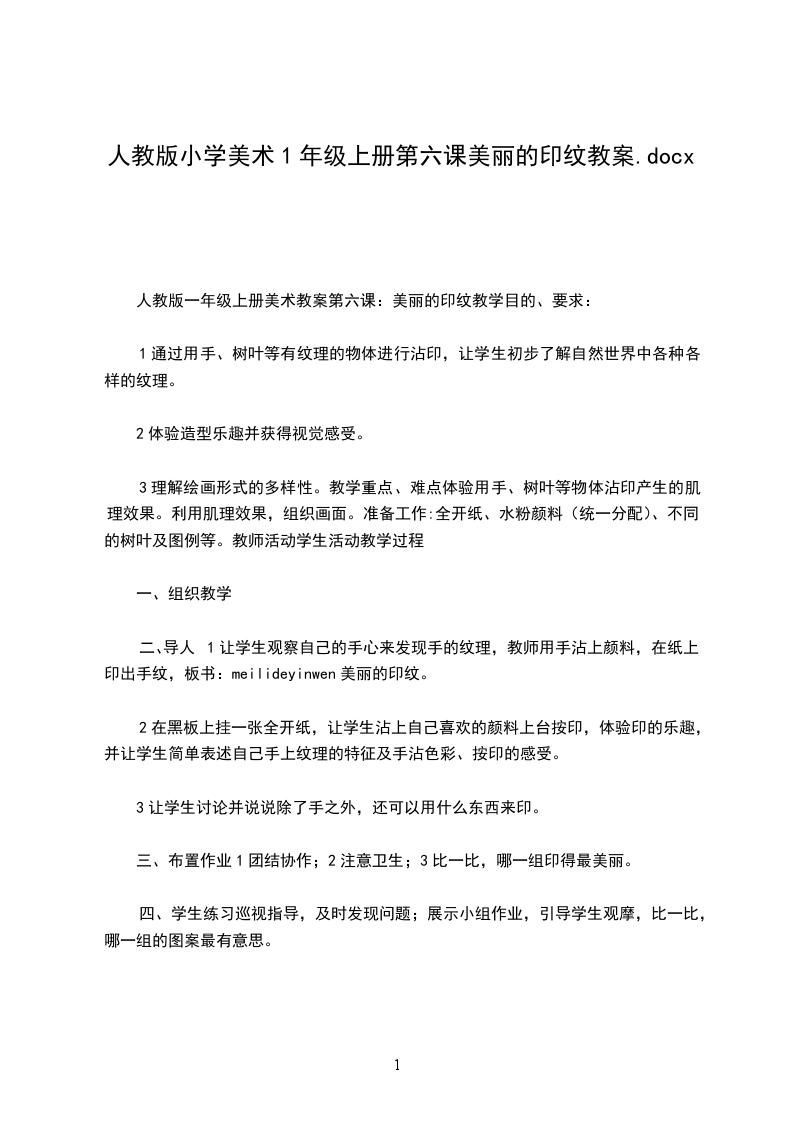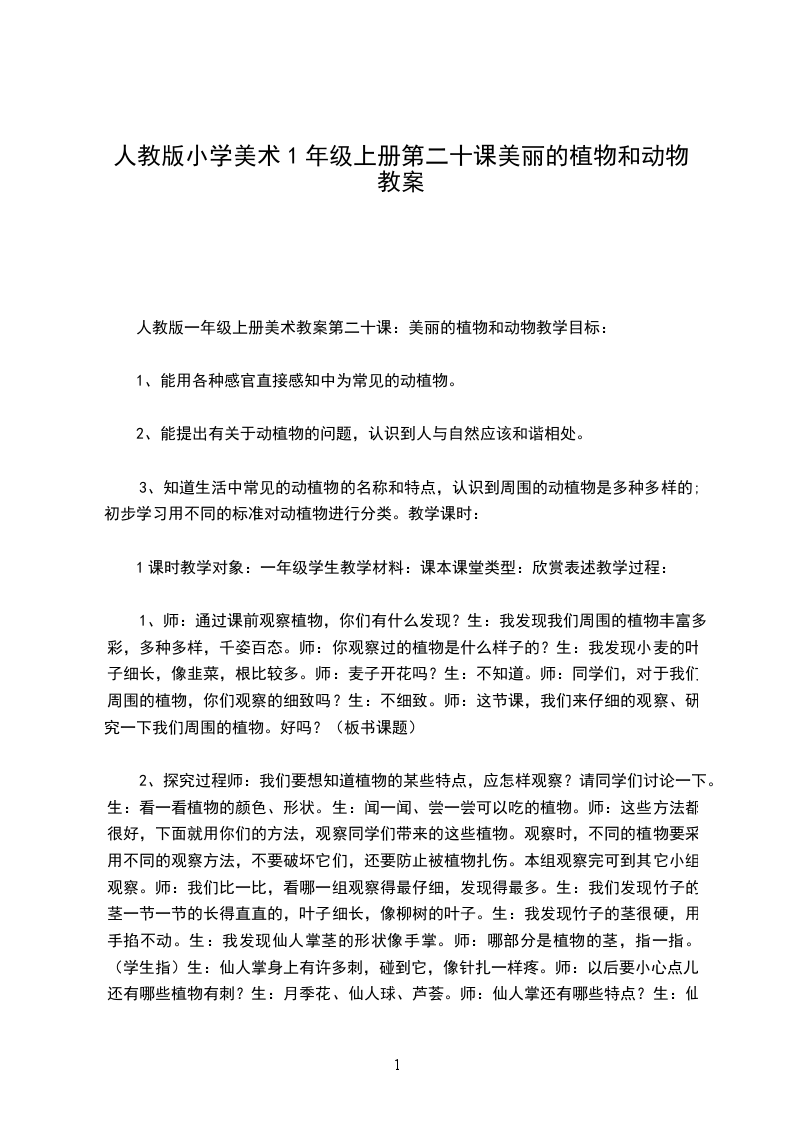 人教版一年级上册美术教案第二十课:美丽的植物和动物教学目标: