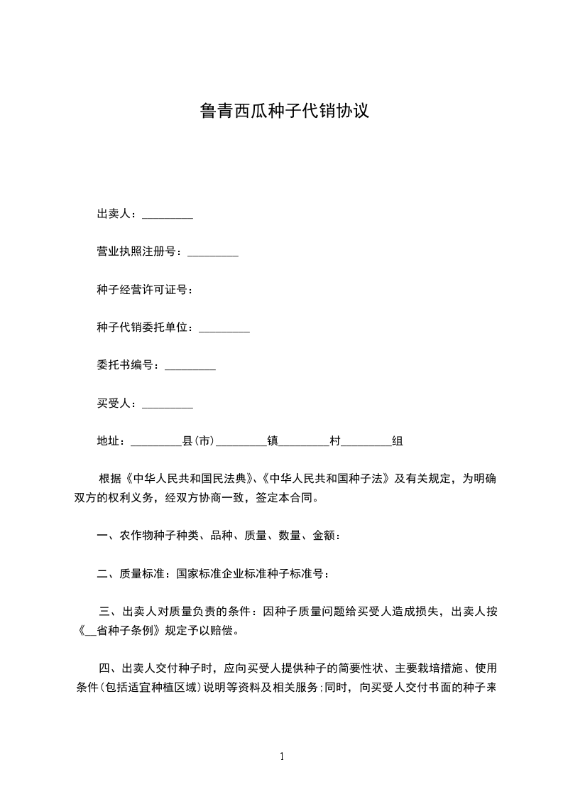 根据《中华人民共和国民法典》、《中华人民共和国种子法》及有关规定,为明确双方的权利义务,经双方协商一致,签定本合同。