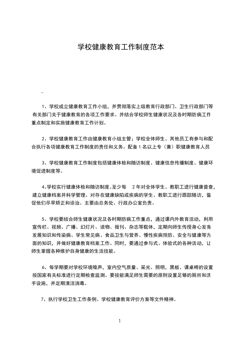 7、执行学校卫生工作条例、学校健康教育评价方案等文件精神。