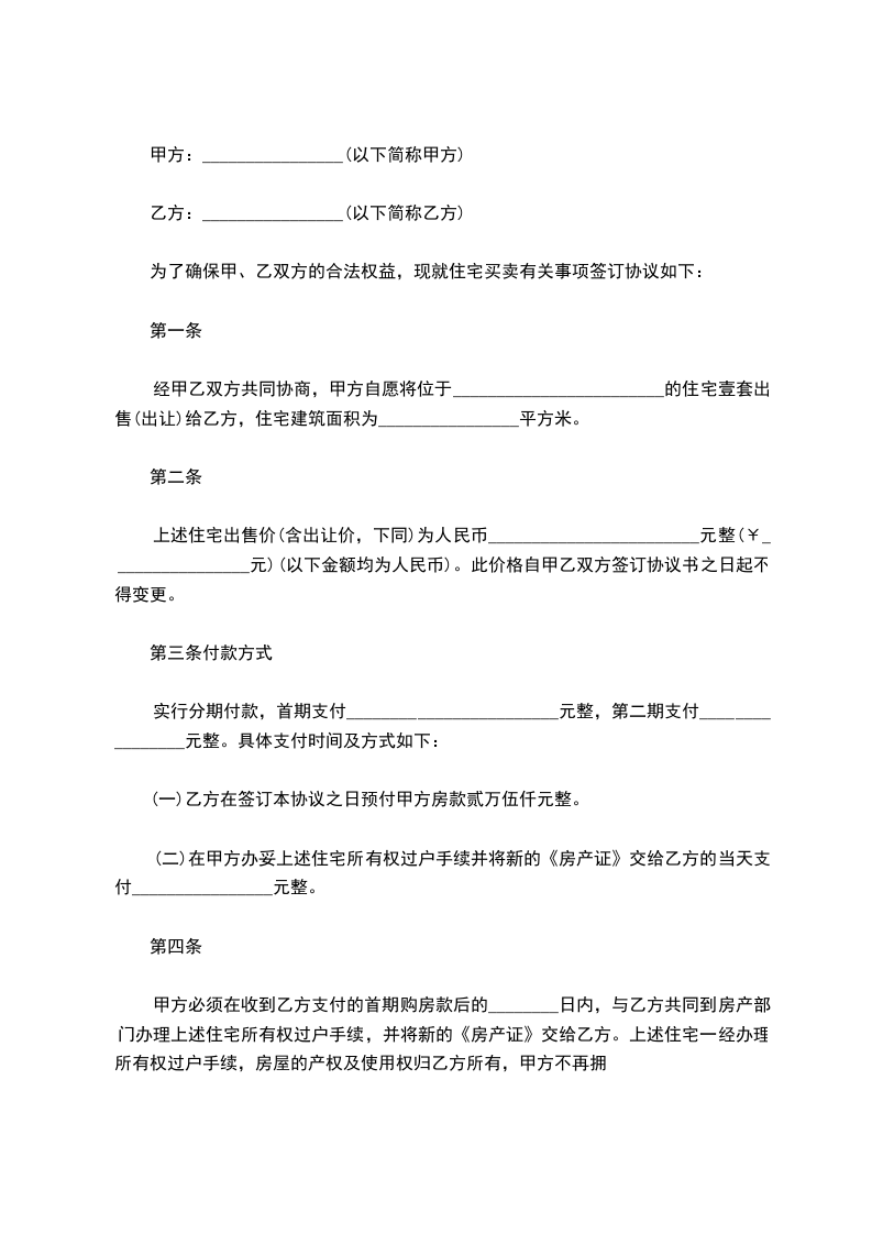 双方商定该房屋转让价格为_______________元整。