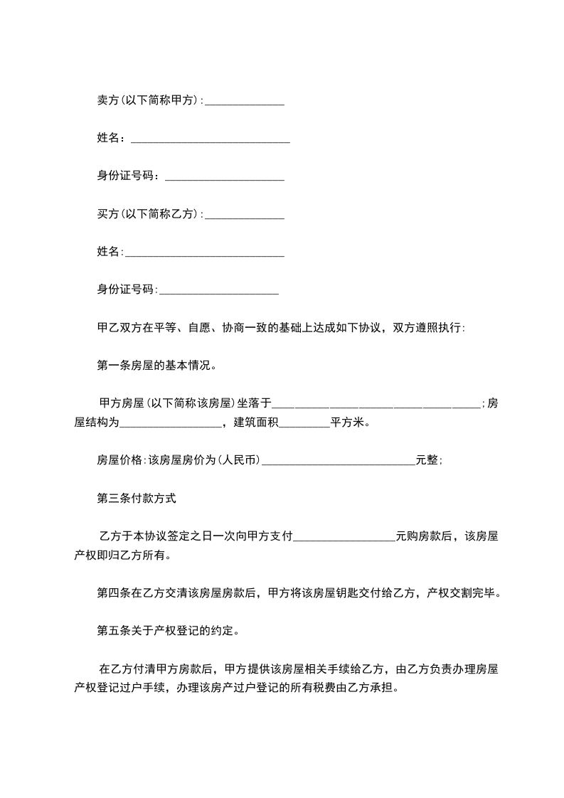 经自愿协商达成一致,甲方将自己合法拥有的一套房屋转让给乙方,双方就房屋转让相关事宜达成以下合同条款,以资共同遵守: