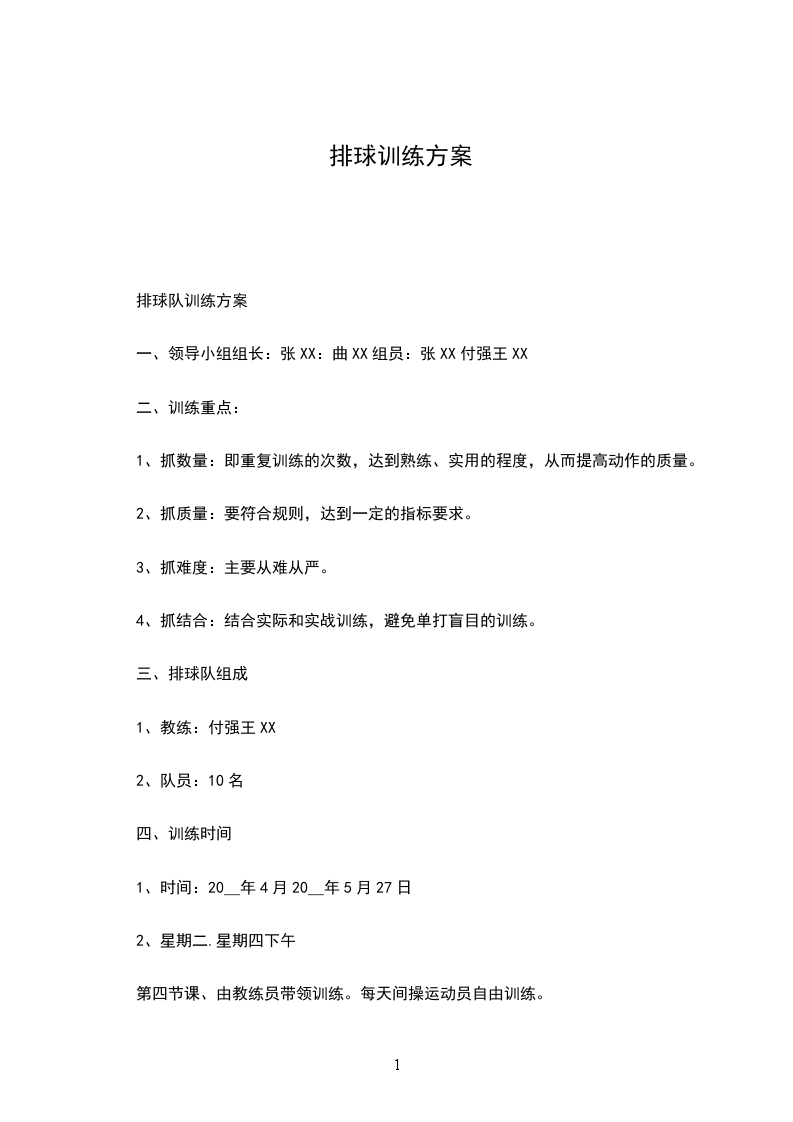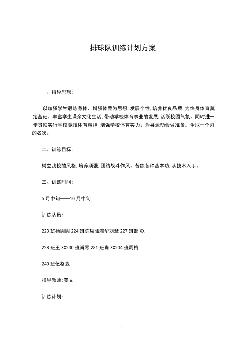 20__年水寨中学高三高考体育训练课任教教师:李XX11.12训练内容排球专项基础;素质练习训练课设计方案