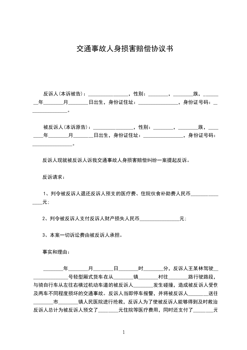 反诉人现就被反诉人诉我交通事故人身损害赔偿纠纷一案提起反诉。