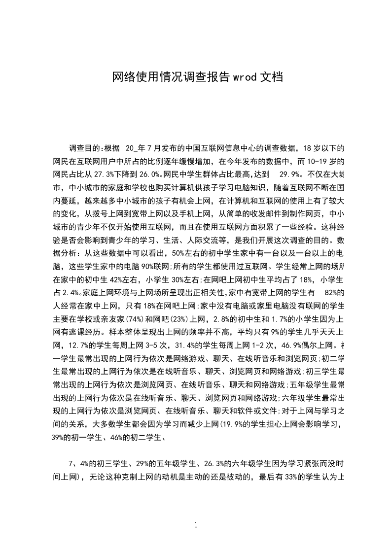 调查目的:根据20_年7月发布的中国互联网信息中心的调查数据,18岁以下的网民在互联网用户中所占的比例逐年缓慢增加,在今年发布的数据中,而10-19岁的网民占比从27.3%下降到26.0%。网民中学生群体占比最高,达到29.9%。不仅在大城市,中小城市的家庭和学校也购买计算机供孩子学习电脑知识,随着互联网不断在国内蔓延,越来越多中小城市的孩子有机会上网,在计算机和互联网的使用上有了较大的变化,从拨号上网到宽带上网以及手机上网,从简单的收发邮件到制作网页,中小城市的青少年不仅开始使用互联网,而且在使用互联网方面积累了一些经验。这种经验是否会影响到青少年的学习、生活、人际交流等,是我们开展这次调查的目的。数据分析:从这些数据中可以看出,50%左右的初中学生家中有一台以及一台以上的电脑,这些学生家中的电脑90%联网;所有的学生都使用过互联网。学生经常上网的场所在家中的初中生42%左右,小学生30%左右;在网吧上网初中生平均占了18%,小学生占2.4%。家庭上网环境与上网场所呈现出正相关性,家中有宽带上网的学生有82%的人经常在家中上网,只有18%在网吧上网;家中没有电脑或家里电脑没有联网的学生主要在学校或亲友家(74%)和网吧(23%)上网,2.8%的初中生和1.7%的小学生因为上网有逃课经历。样本整体呈现出上网的频率并不高,平均只有9%的学生几乎天天上网,12.7%的学生每周上网3-5次,31.4%的学生每周上网1-2次,46.9%偶尔上网。初一学生最常出现的上网行为依次是网络游戏、聊天、在线听音乐和浏览网页;初二学生最常出现的上网行为依次是在线听音乐、聊天、浏览网页和网络游戏;初三学生最常出现的上网行为依次是浏览网页、在线听音乐、聊天和网络游戏;五年级学生最常出现的上网行为依次是在线听音乐、聊天、浏览网页和网络游戏;六年级学生最常出现的上网行为依次是浏览网页、在线听音乐、聊天和软件或文件;对于上网与学习之间的关系,大多数学生都会因为学习而减少上网(19.9%的学生担心上网会影响学习,39%的初一学生、46%的初二学生、