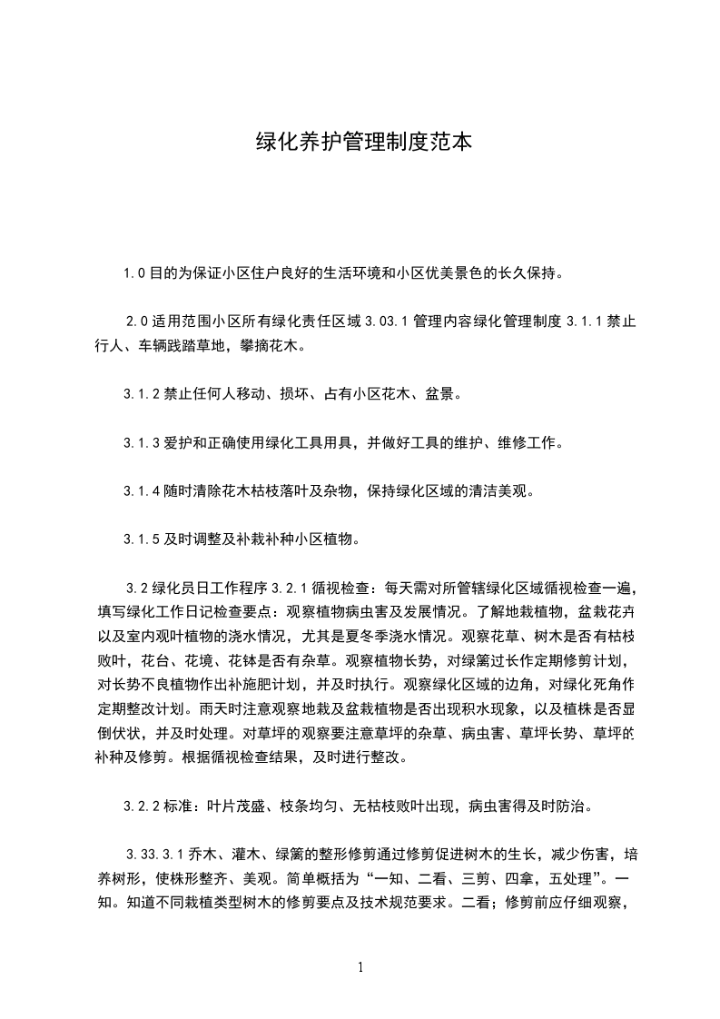 2.0适用范围小区所有绿化责任区域3.03.1管理内容绿化管理制度3.1.1禁止行人、车辆践踏草地,攀摘花木。