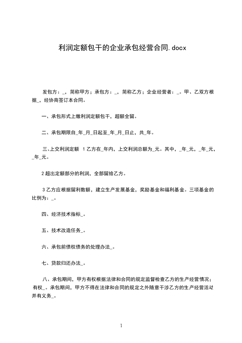 三、上交利润定额1乙方在_年内,上交利润总额为_元。其中,_年_元,_年_元,_年_元。