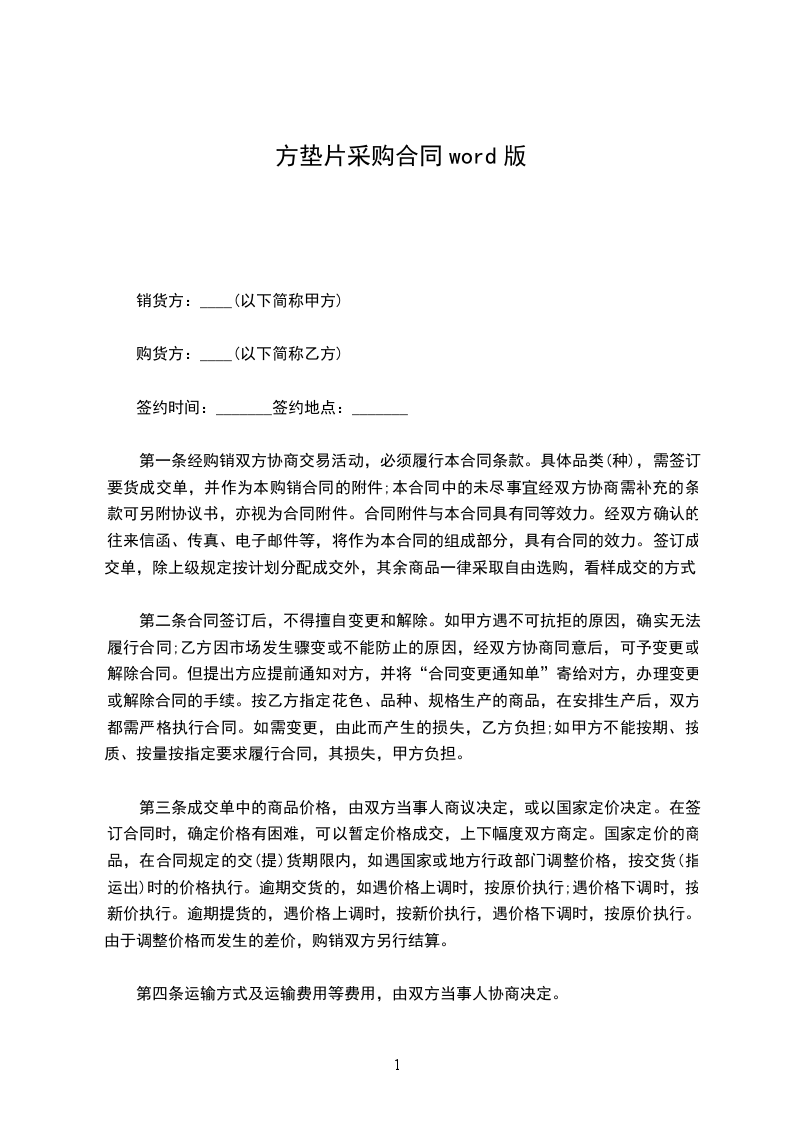 第一条经购销双方协商交易活动,必须履行本合同条款。具体品类(种),需签订要货成交单,并作为本购销合同的附件;本合同中的未尽事宜经双方协商需补充的条款可另附协议书,亦视为合同附件。合同附件与本合同具有同等效力。经双方确认的往来信函、传真、电子邮件等,将作为本合同的组成部分,具有合同的效力。签订成交单,除上级规定按计划分配成交外,其余商品一律采取自由选购,看样成交的方式。