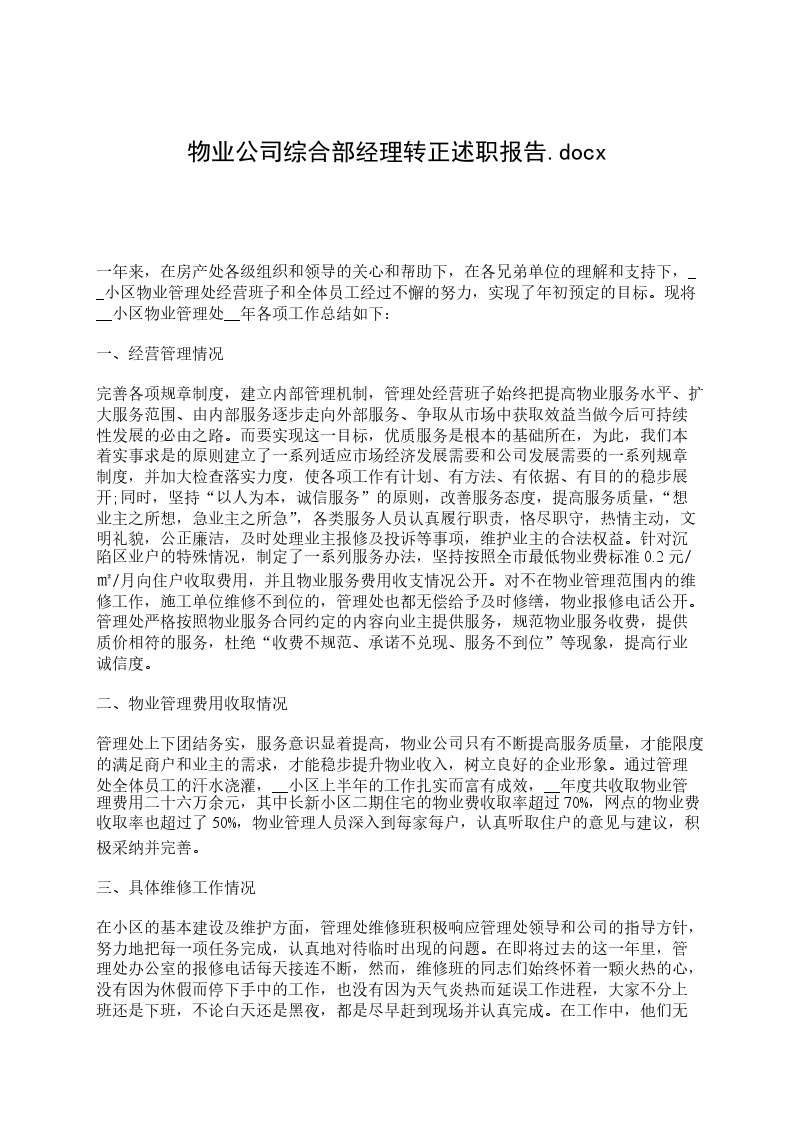 物业公司综合部经理转正述职报告物业经理转正述职报告篇三