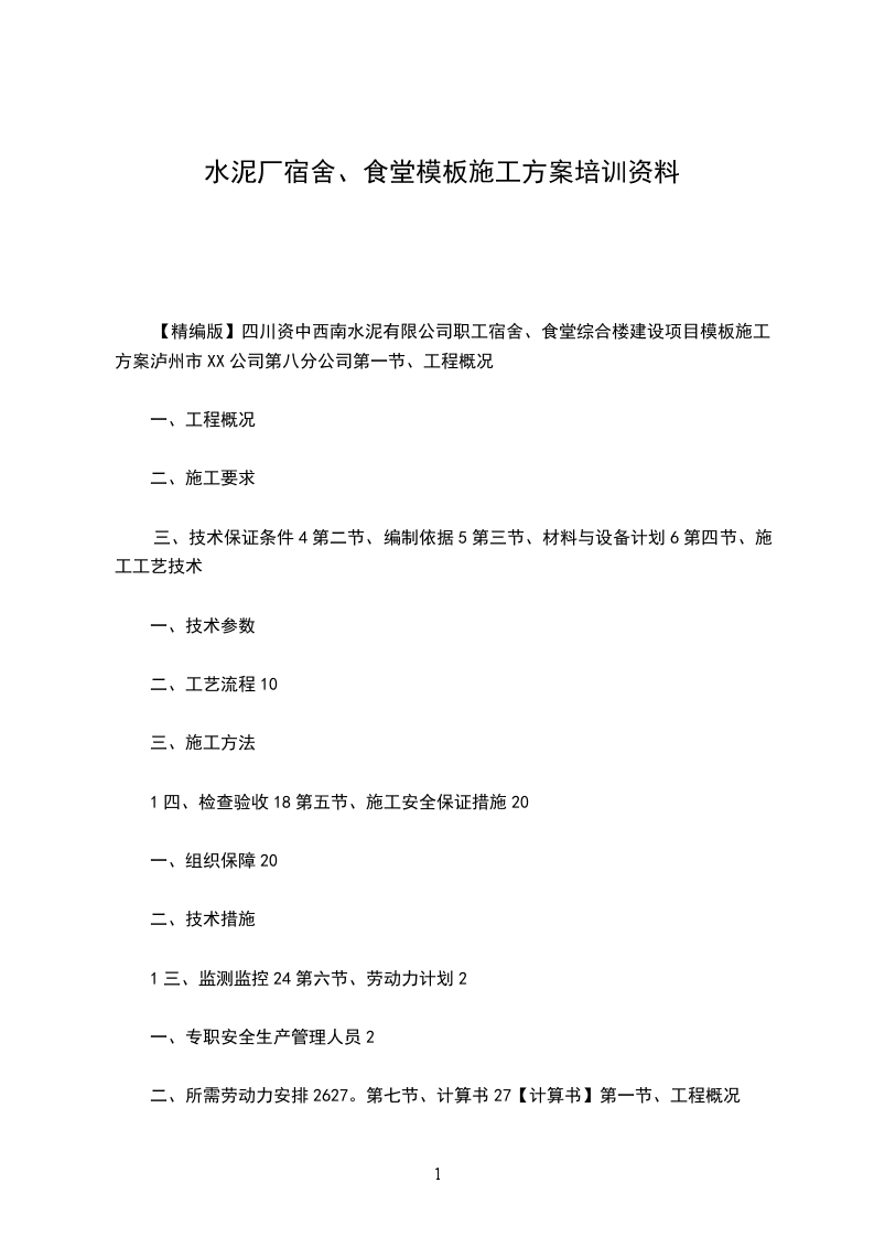 【精编版】四川资中西南水泥有限公司职工宿舍、食堂综合楼建设项目模板施工方案泸州市XX公司第八分公司第一节、工程概况
