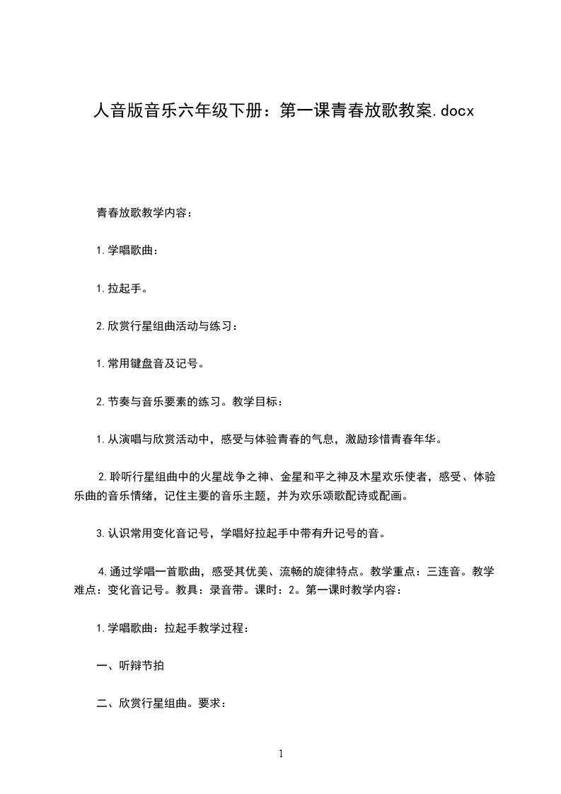 1.学唱歌曲:拉起手教学过程: