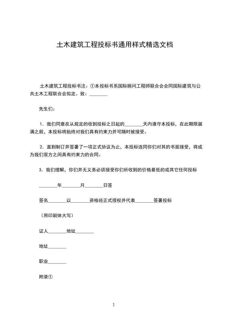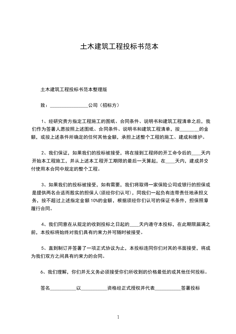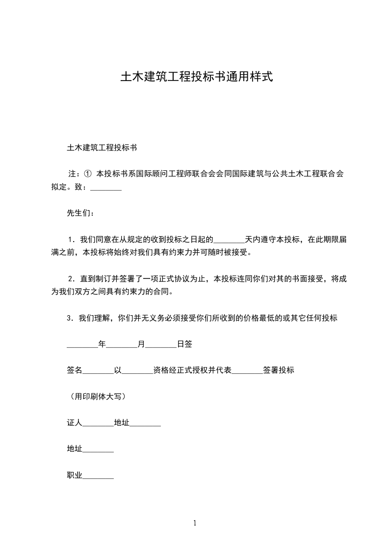 土木建筑工程投标书注:①本投标书系国际顾问工程师联合会会同国际建筑与公共土木工程联合会拟定。致:____