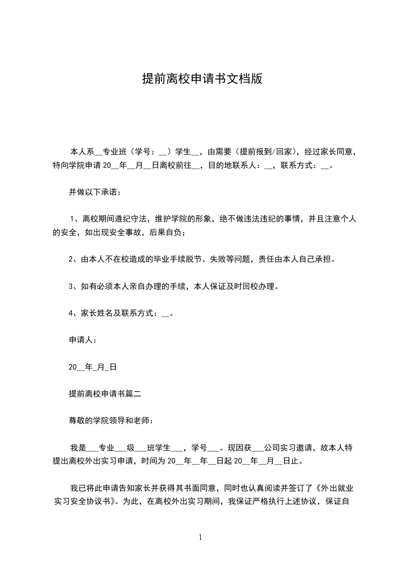 我是___班级___学号___专业20_届毕业生___。根据本人已经在校学习两年半的实际状况,本人自愿申请并经家长同意离校前往___(单位)参加就业工作。