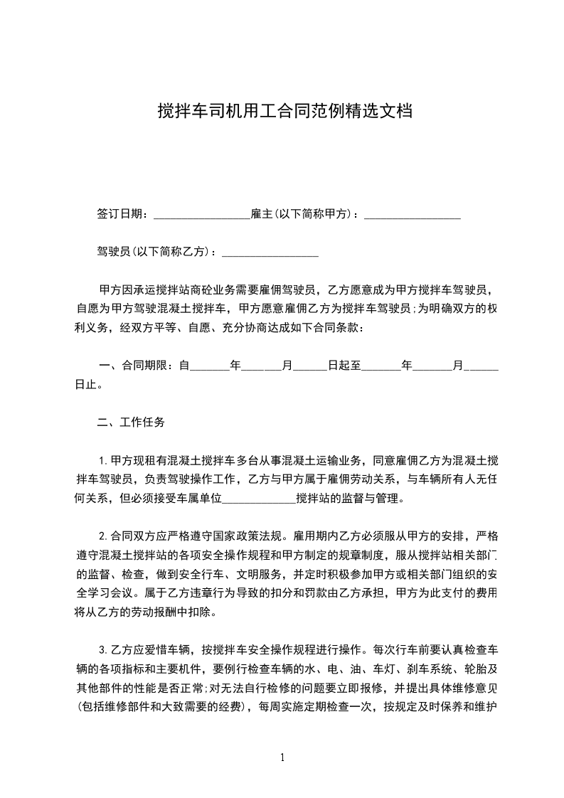 甲方因承运搅拌站商砼业务需要雇佣驾驶员,乙方愿意成为甲方搅拌车驾驶员,自愿为甲方驾驶混凝土搅拌车,甲方愿意雇佣乙方为搅拌车驾驶员;为明确双方的权利义务,经双方平等、自愿、充分协商达成如下合同条款:
