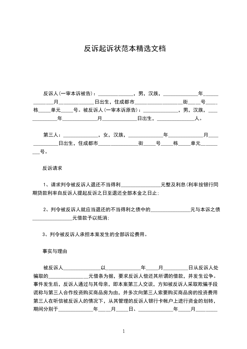 反诉人(一审本诉被告):______________,男,汉族,______________年______________月______________日出生,住成都市___________________街_____号_____栋_____单元_____号。被反诉人(一审本诉原告):______________,男,汉族,______________年______________月______________日出生,_______________人。