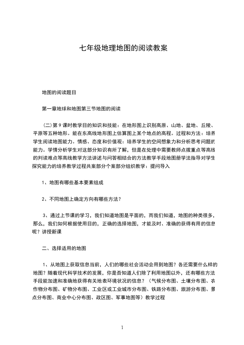 1、从地图上获取信息当前,人们的哪些社会活动会用到地图?各还需要什么样的地图?随着现代科学技术的发展,你是否知道人们除了利用地图以外,还有哪些方法、手段能加速和准确地获得有关地表环境状况的信息?(气候分布图、土壤分布图、农作物分布图、矿物分布图、工业区或工业城市分布图、铁路分布图、旅游分布图、景点分布图、商业中心分布图、政区图、军事地图等)教学过程