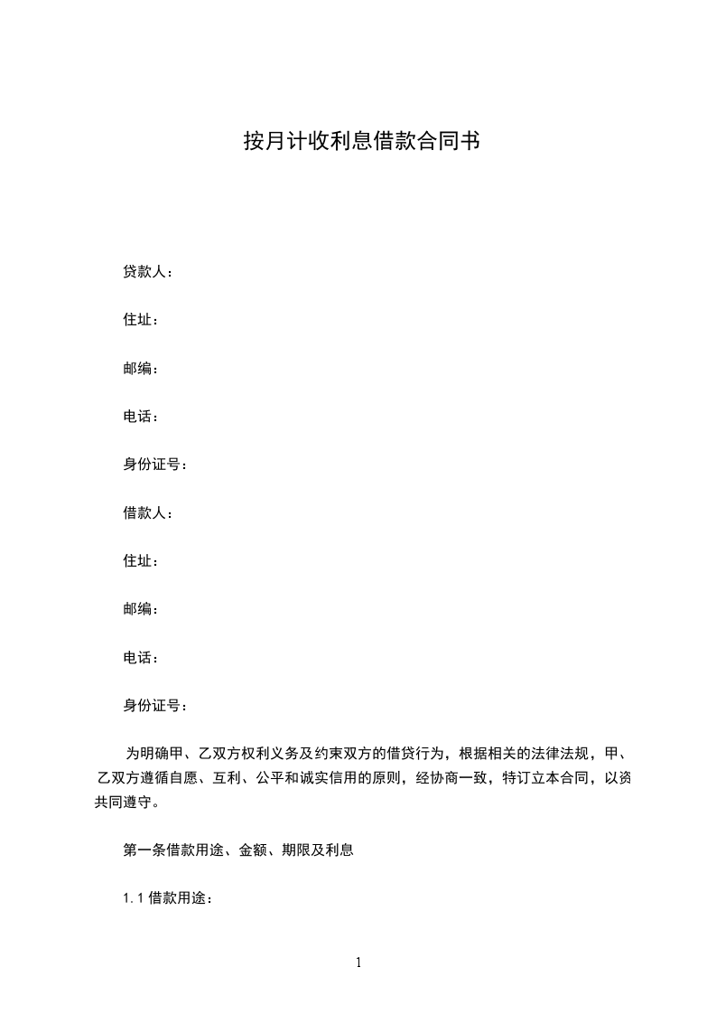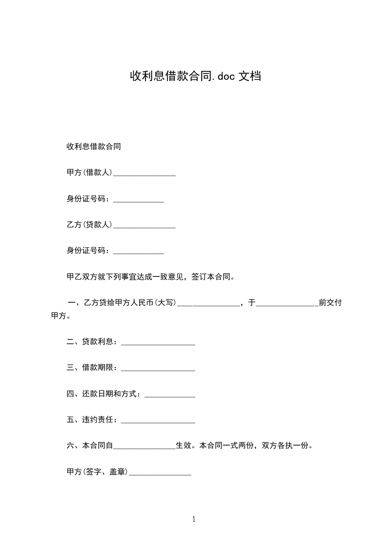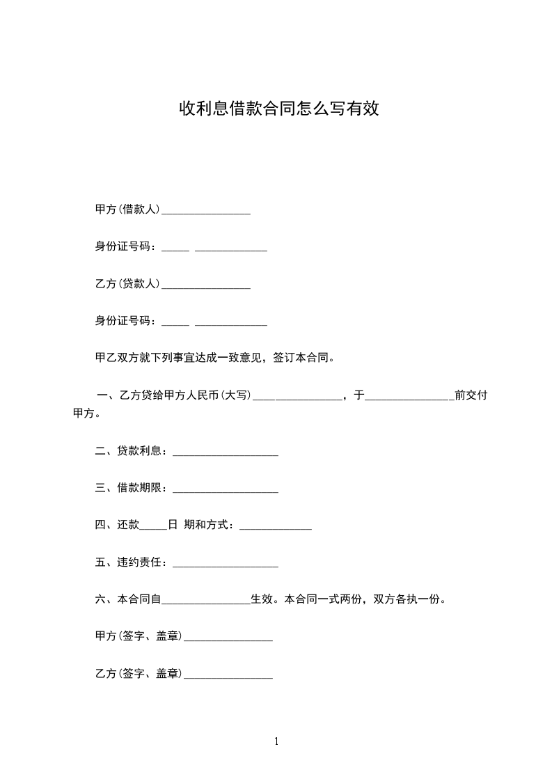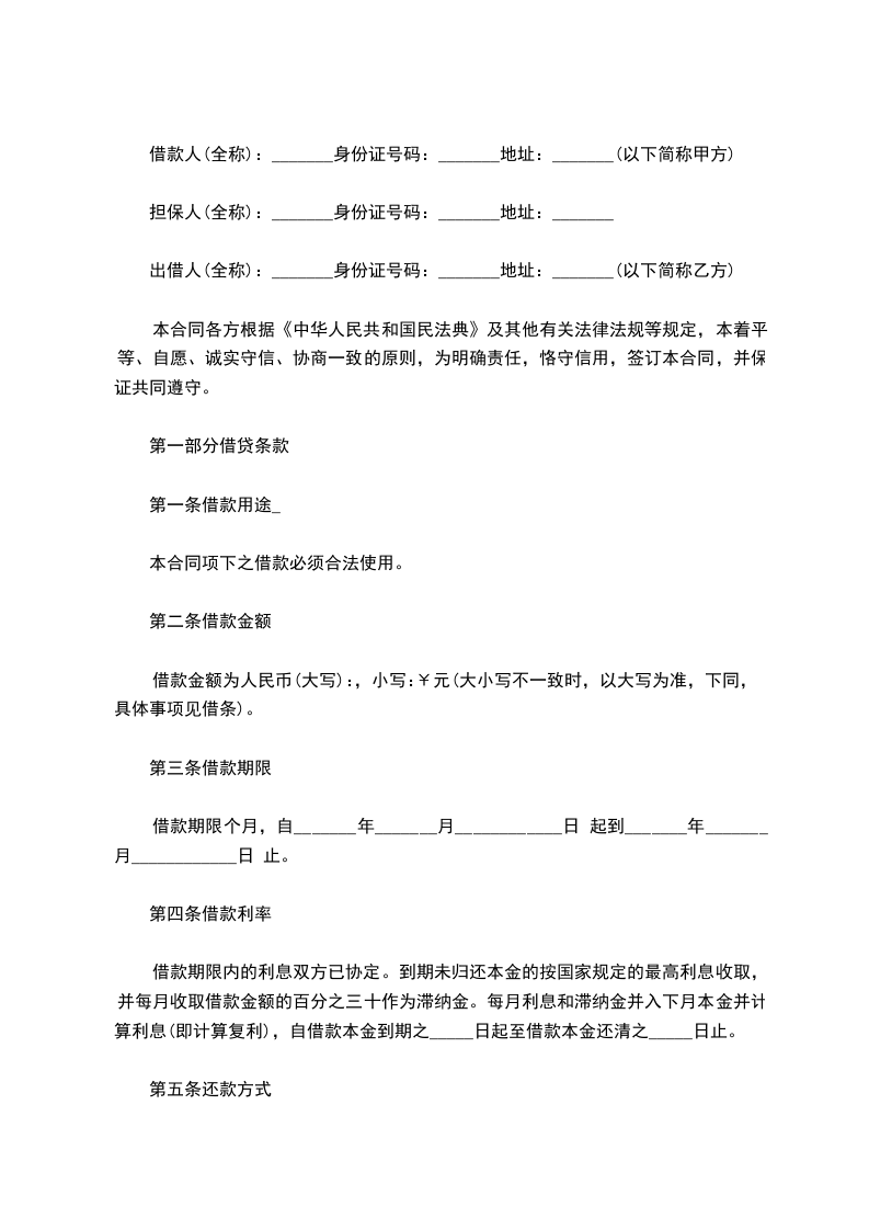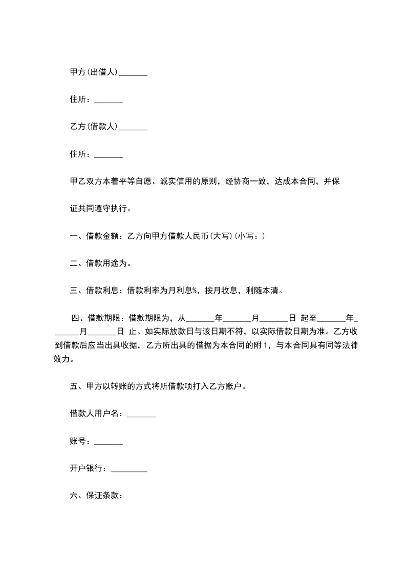 一、乙方贷给甲方人民币(大写)________________,于________________前交付甲方。