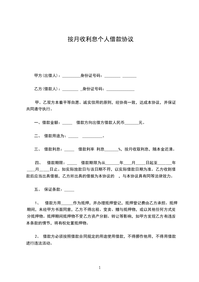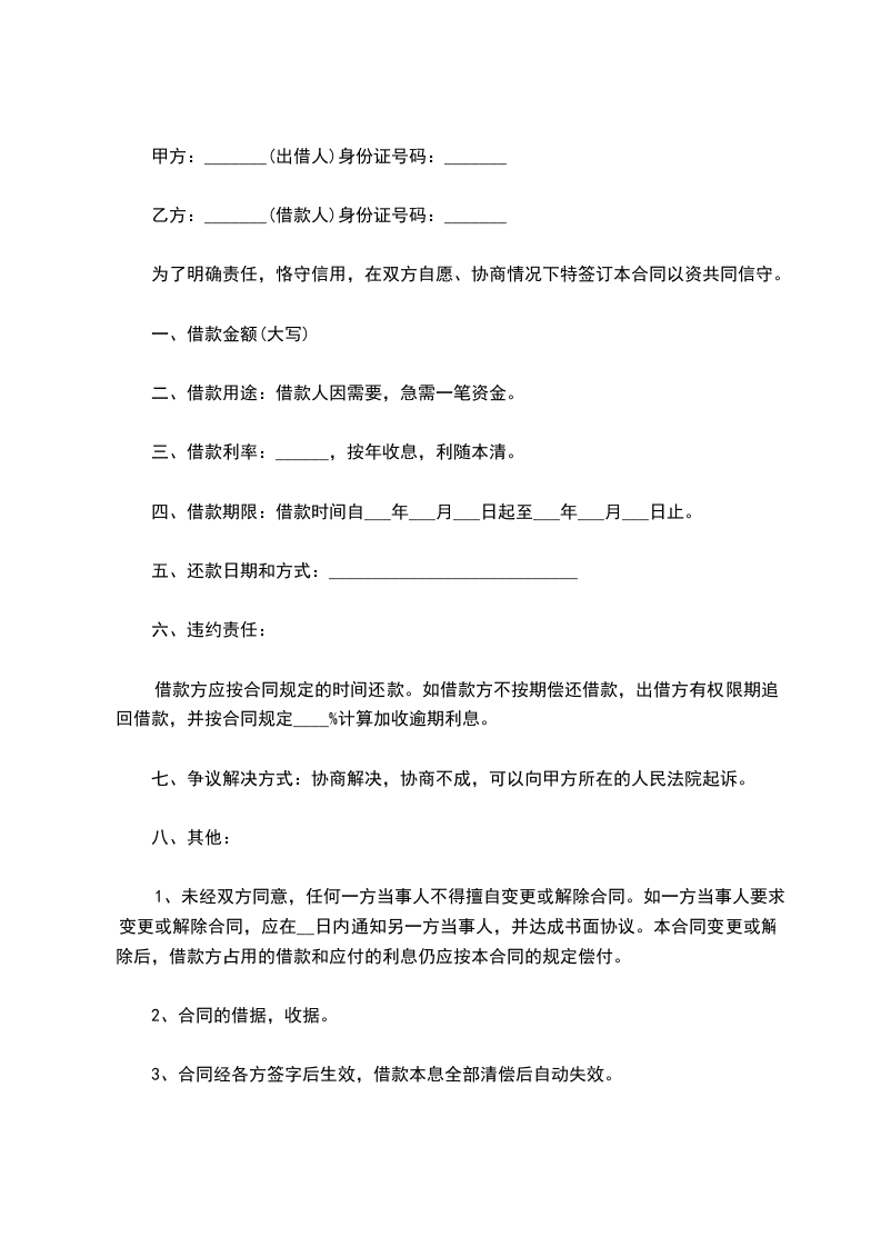 甲方(借款人)________________身份证号码:_____________