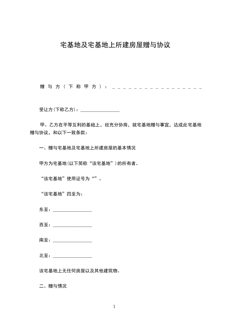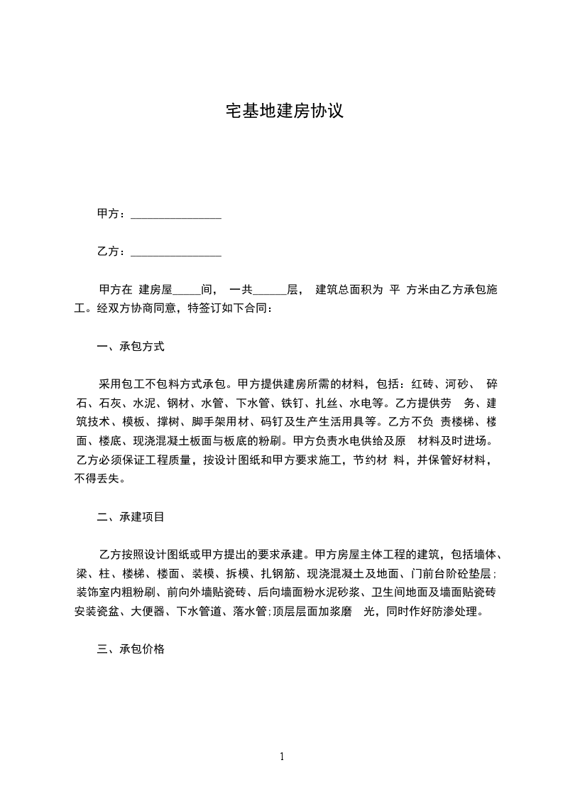 1、甲乙双方同意将位于(北至_________________,西至________________,东至________________南至________________)的宅基地用于甲、乙方建造房屋。