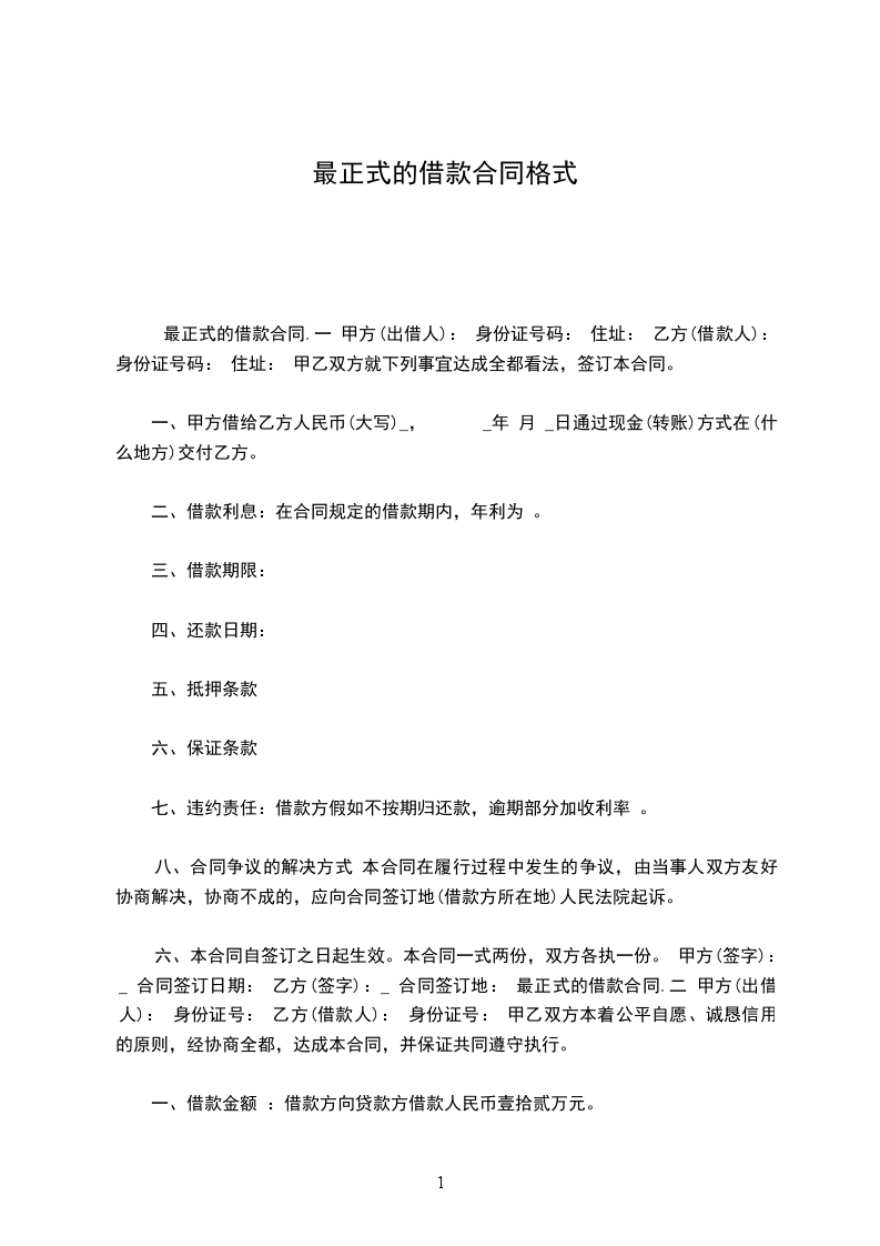 一、借款金额 :借款方向贷款方借款人民币壹拾贰万元。