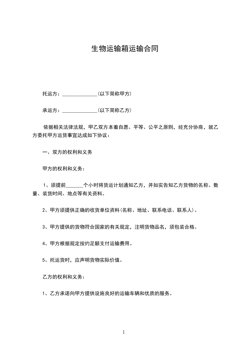 生物运输箱承运合同