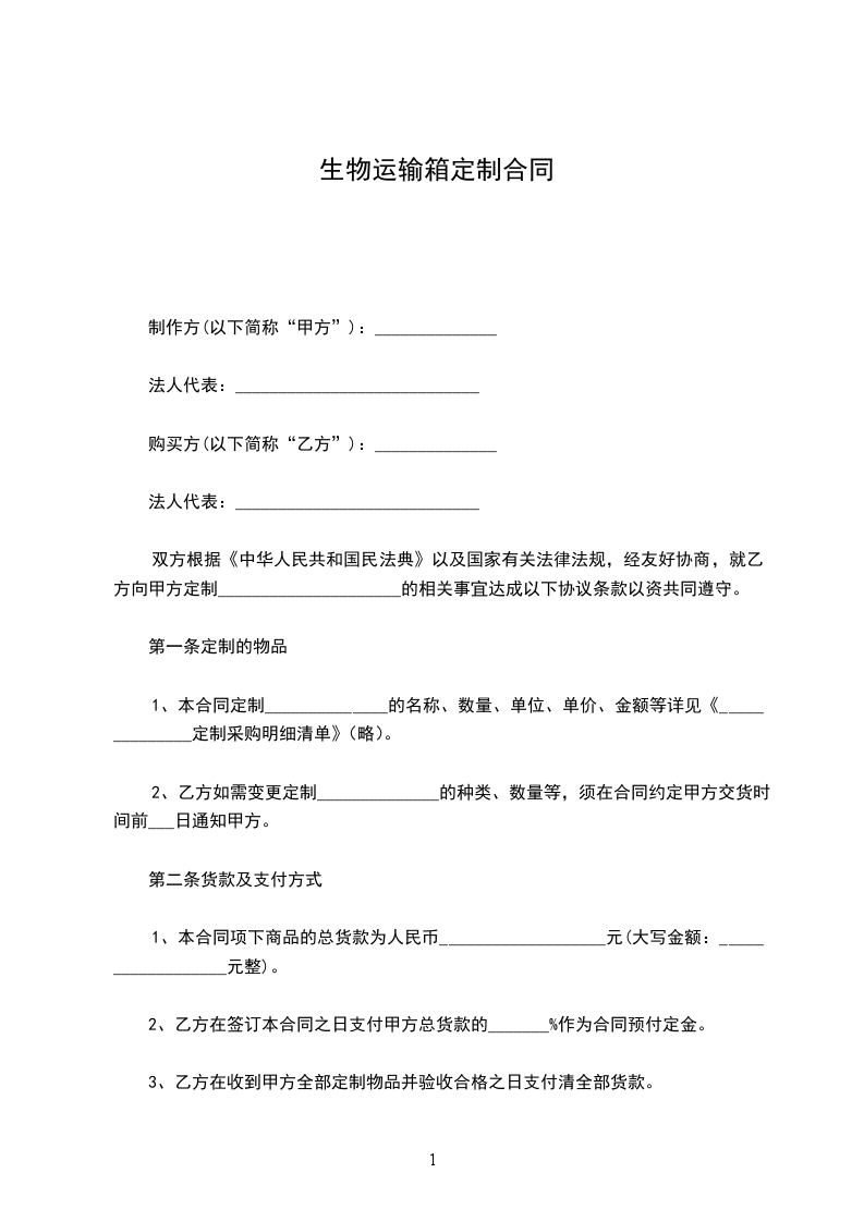 1、不按合同规定的时间和要求配车、发运的,承运方应偿付甲方违约金____元。