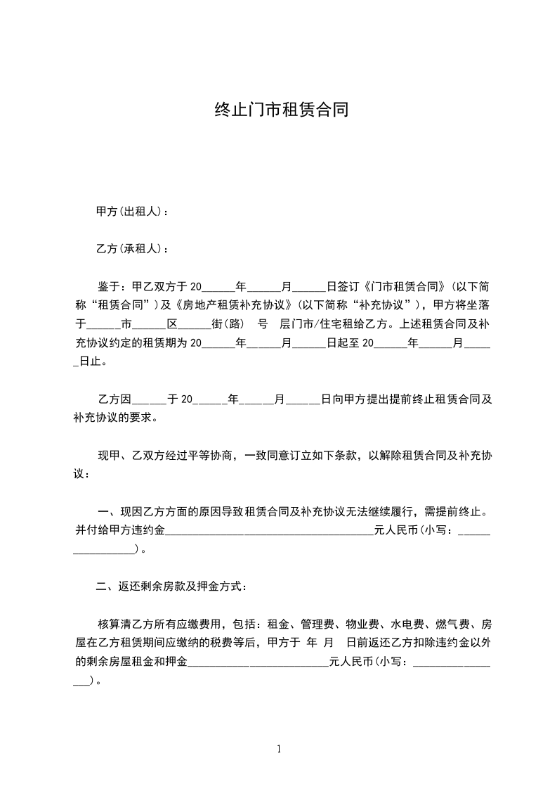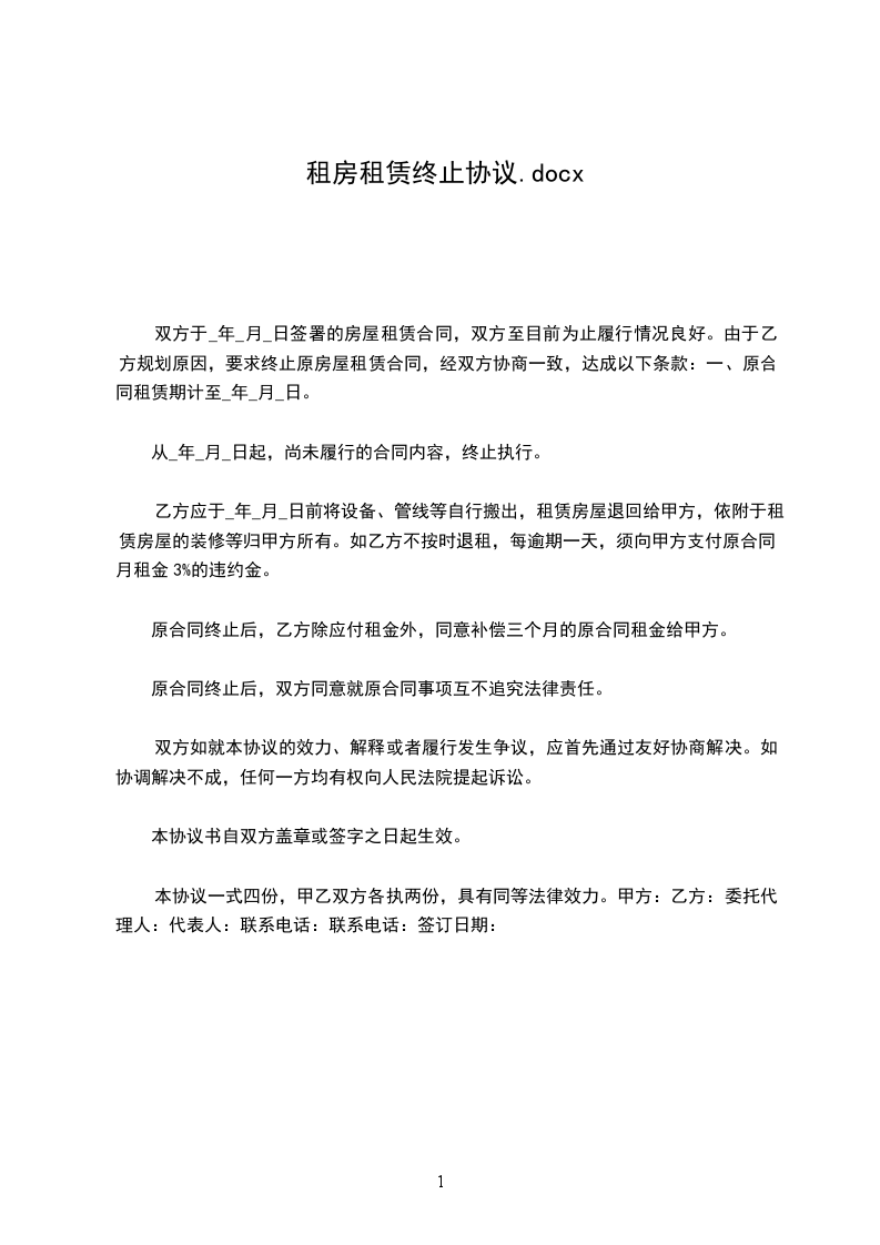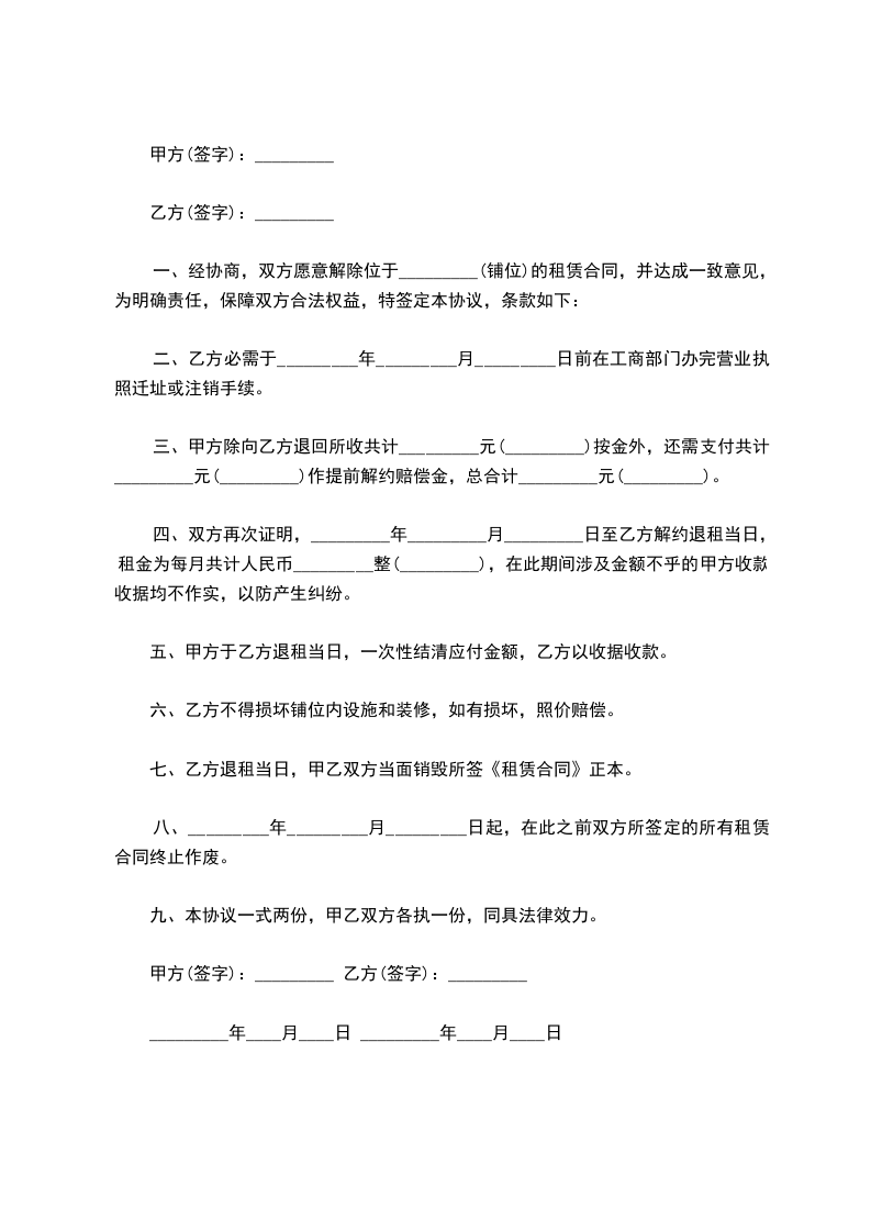 一、原合同租赁期计至__ 年 ___ 月 ___ 日。
