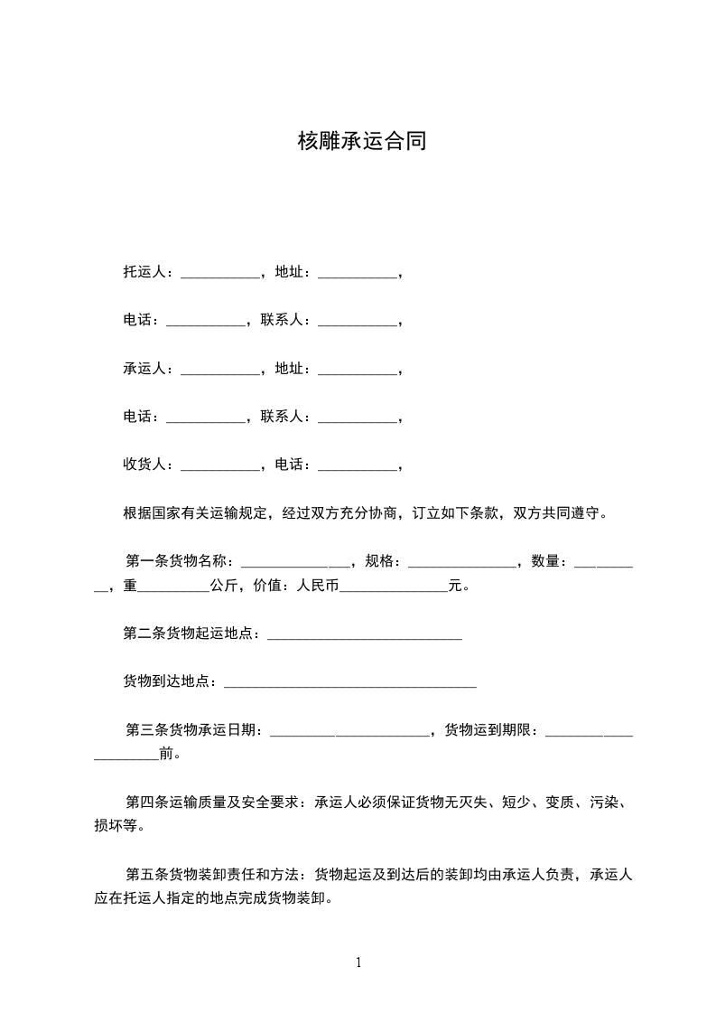 2、承运方的义务:在合同规定的期限内,将货物运到甲方指定的地点,交给甲方指定的收货人。承运的货物要负责安全,保证货物无短缺、无损坏,如出现此类问题,应承担赔偿义务。