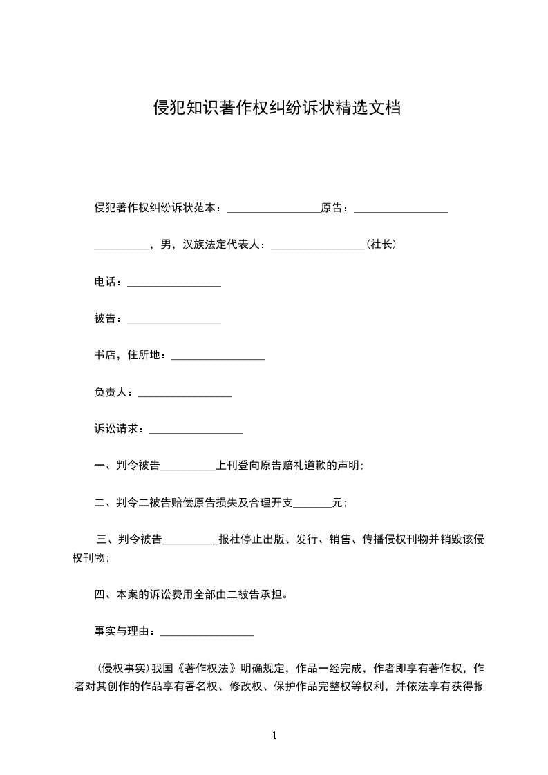 侵犯著作权纠纷诉状范本:_________________原告:_________________