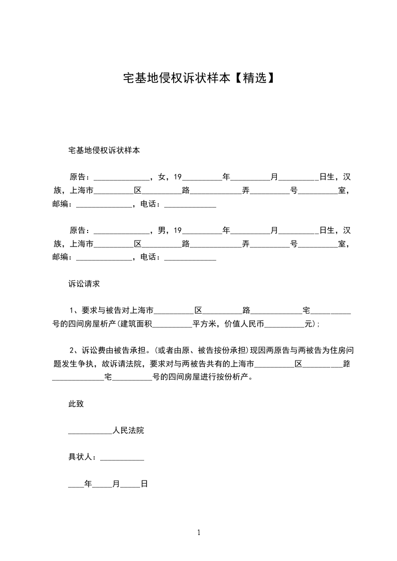 原告:______________,女,19__________年__________月__________日生,汉族,上海市__________区__________路_____________弄__________号__________室,邮编:______________,电话:_____________原告:______________,男,19__________年__________月__________日生,汉族,上海市__________区__________路_____________弄__________号__________室,邮编:______________,电话:_____________