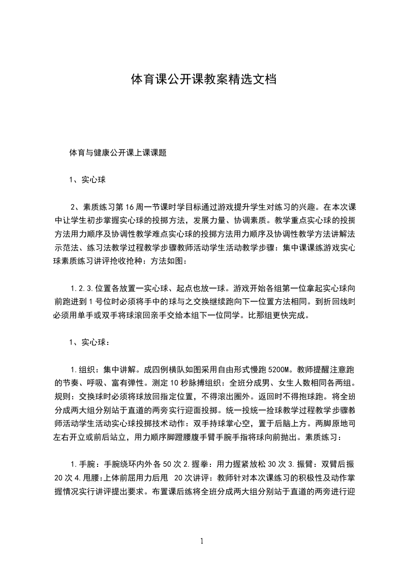 1.组织:集中讲解。成四例横队如图采用自由形式慢跑5200M。教师提醒注意跑的节奏、呼吸、富有弹性。测定10秒脉搏组织:全班分成男、女生人数相同各两组。规则:交换球时必须将球放回指定位置,不得滚出圈外。返回时不得抱球跑。将全班分成两大组分别站于直道的两旁实行迎面投掷。统一投统一捡球教学过程教学步骤教师活动学生活动实心球投掷技术动作:双手持球掌心空,置于后脑上方。两脚原地可左右开立或前后站立,用力顺序脚蹬腰腹手臂手腕手指将球向前抛出。素质练习: