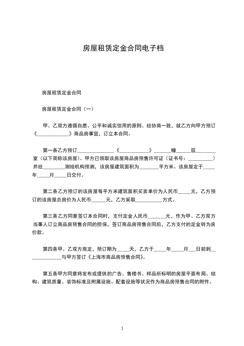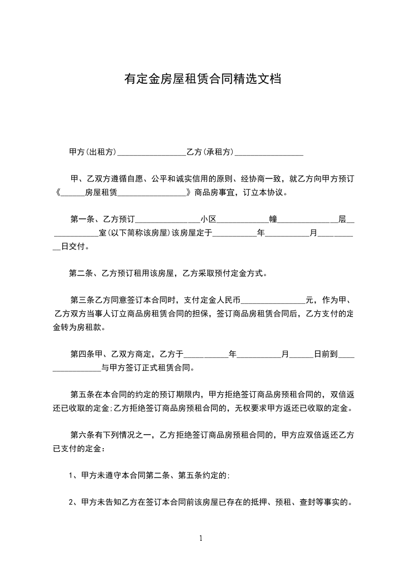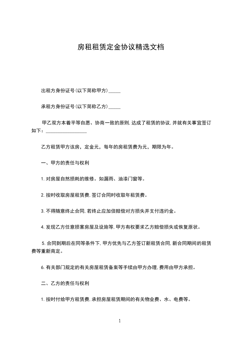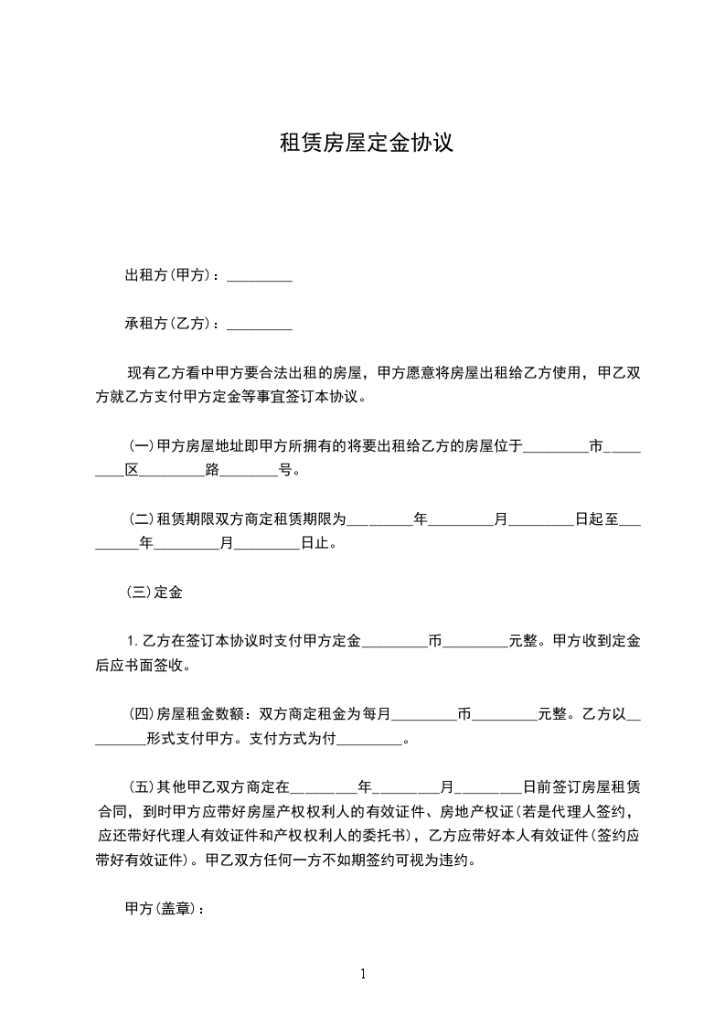 乙方租赁甲方该房,定金元,每年的房租赁费为元,期限为年。