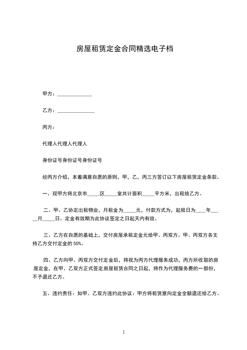 三、合同中未尽事宜,甲乙双方应本着相互谅解的原则按法律规定协商解决,双方议定违约金为元。