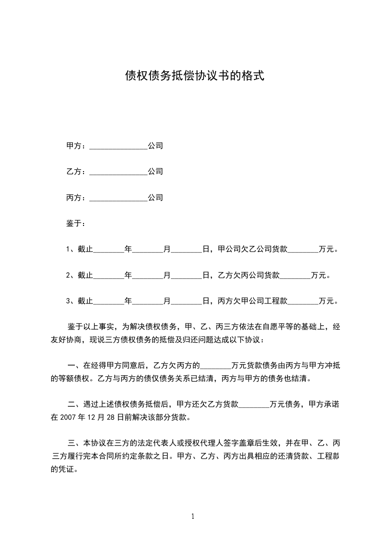 二、遇过上述债权债务抵偿后,甲方还欠乙方货款________万元债务,甲方承诺在2007年12月28日前解决该部分货款。