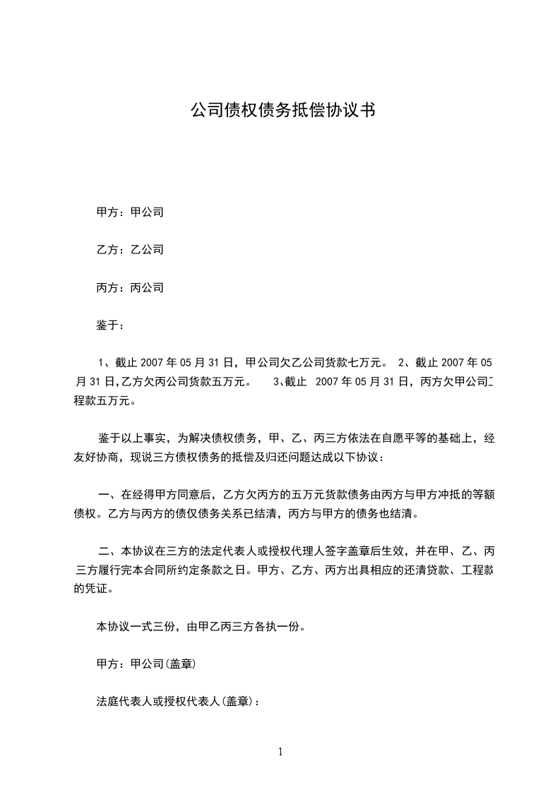 一、在经得甲方同意后,乙方欠丙方的________万元货款债务由丙方与甲方冲抵的等额债权。乙方与丙方的债仅债务关系已结清,丙方与甲方的债务也结清。