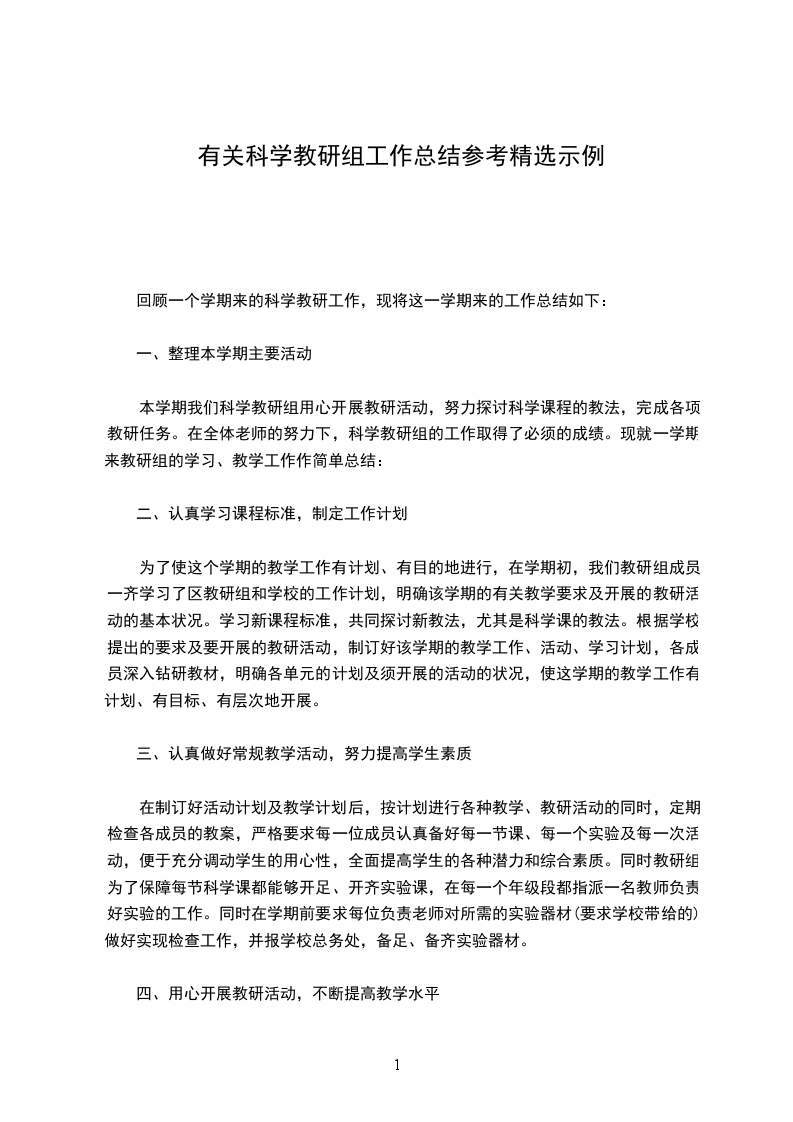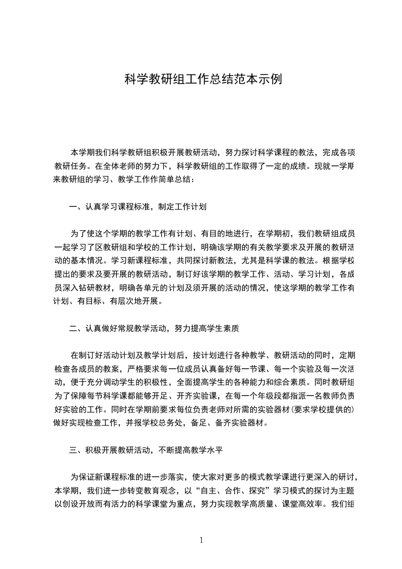 一、指导思想本学期科学教研组活动是以新课程的理念来指导课堂教学,以“科学实验教学评价”为契机,以现代教育理论为指导,更新教育观念,扎实做好科学学科的实验教学工作,扎实做好科学实验教学工作,抓好常规教学管理工作,充分发挥现任常科学老师各自的优势,以培养习惯、激发兴趣为目标,切实提高学生的科学素养,使教研活动成为提高教学质量的有效途径。