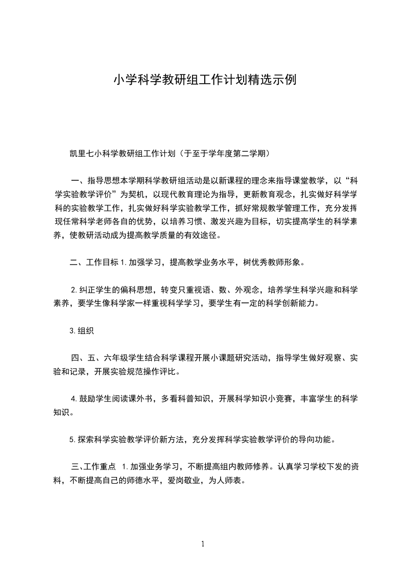 凯里七小科学教研组工作计划(于至于学年度第二学期)
