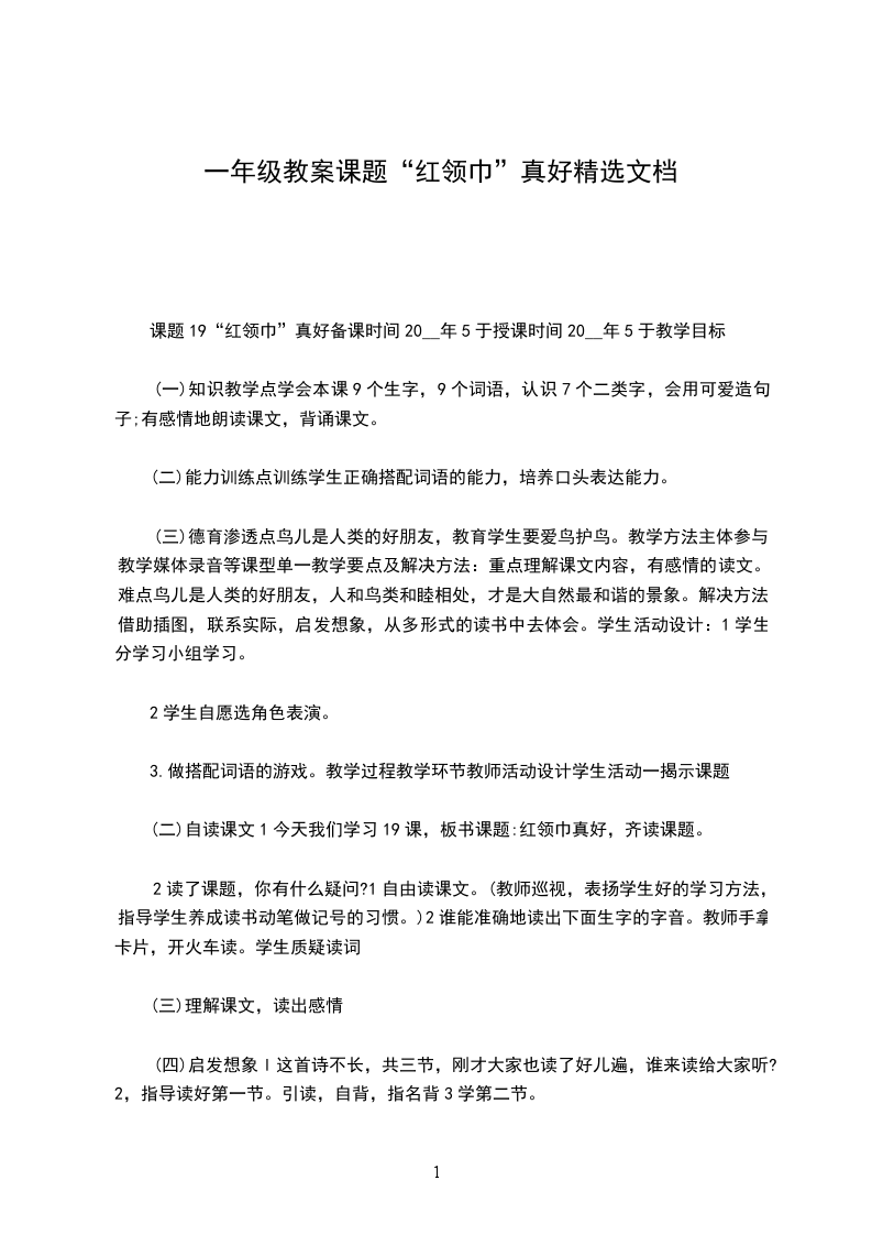(二)自读课文1今天我们学习19课,板书课题:红领巾真好,齐读课题。