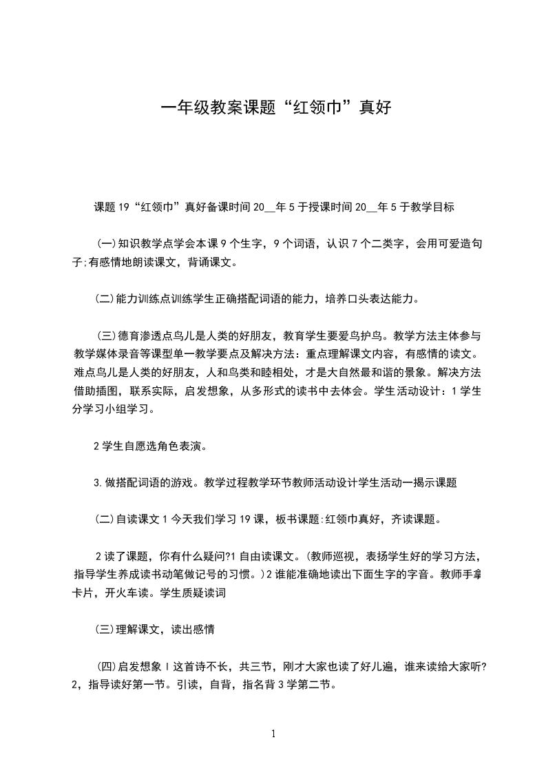 课题19“红领巾”真好备课时间20__年5于授课时间20__年5于教学目标