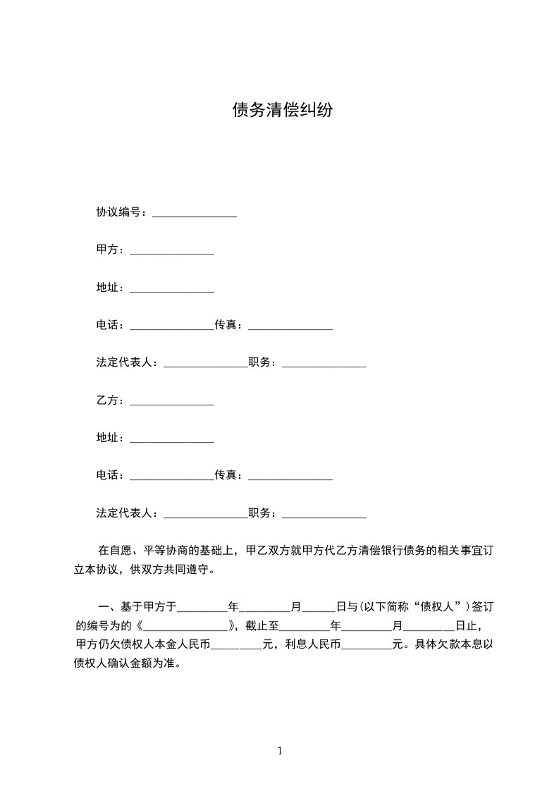 一、基于甲方于_________年_________月______日与(以下简称“债权人”)签订的编号为的《_______________》,截止至_________年_________月_________日止,甲方仍欠债权人本金人民币_________元,利息人民币_________元。具体欠款本息以债权人确认金额为准。