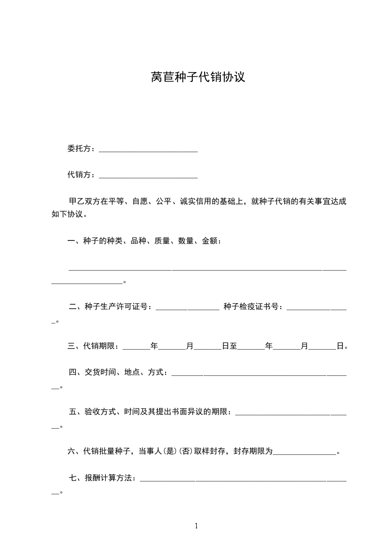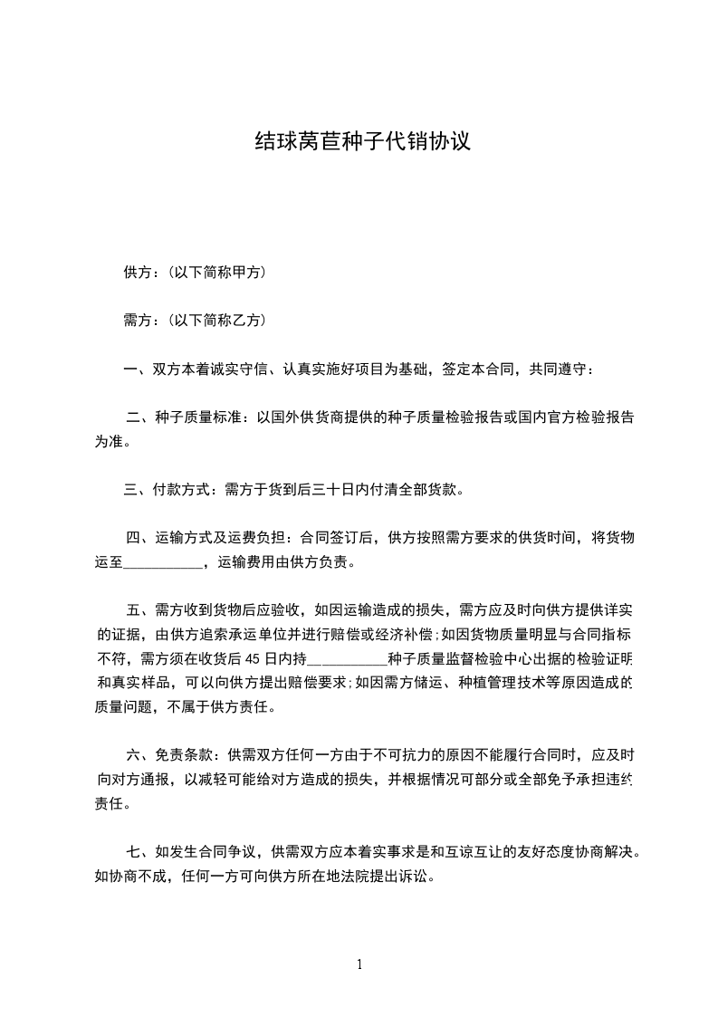 结球莴苣种子代销协议
