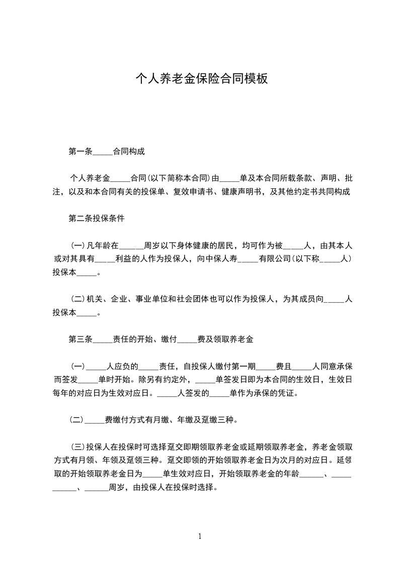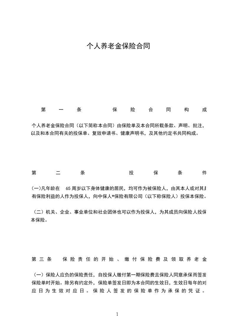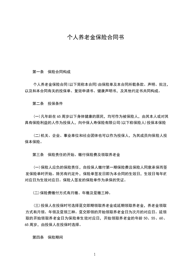 个人养老金保险合同(以下简称本合同)由保险单及本合同所载条款、声明、批注,以及和本合同有关的投保单、复效申请书、健康声明书,及其他约定书共同构成。