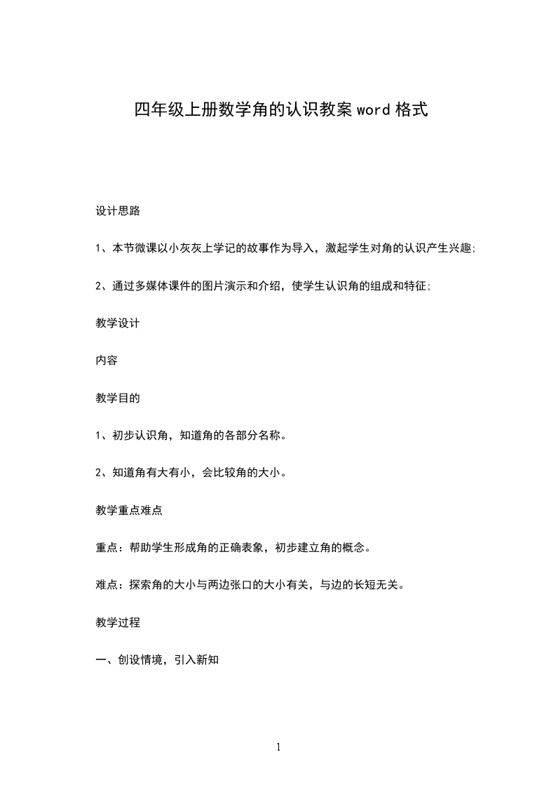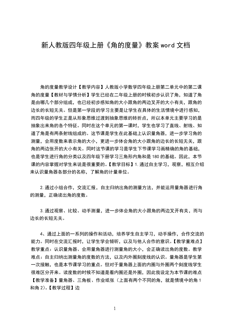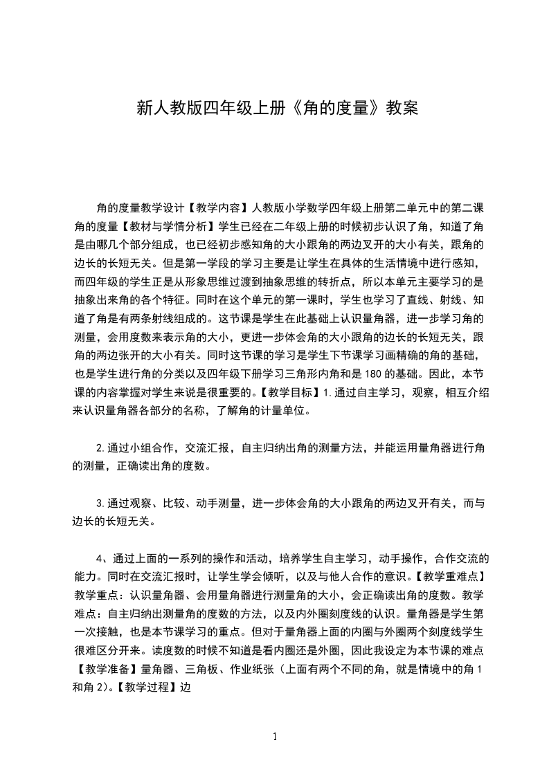 四年级上册角的度量的教案人教版四年级数学上册角的度量教学设计篇二