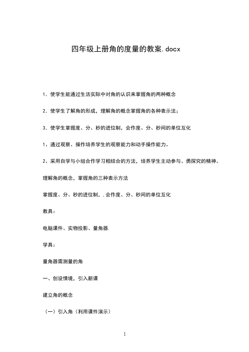 四年级上册角的度量的教案人教版四年级数学上册角的度量教学设计篇三